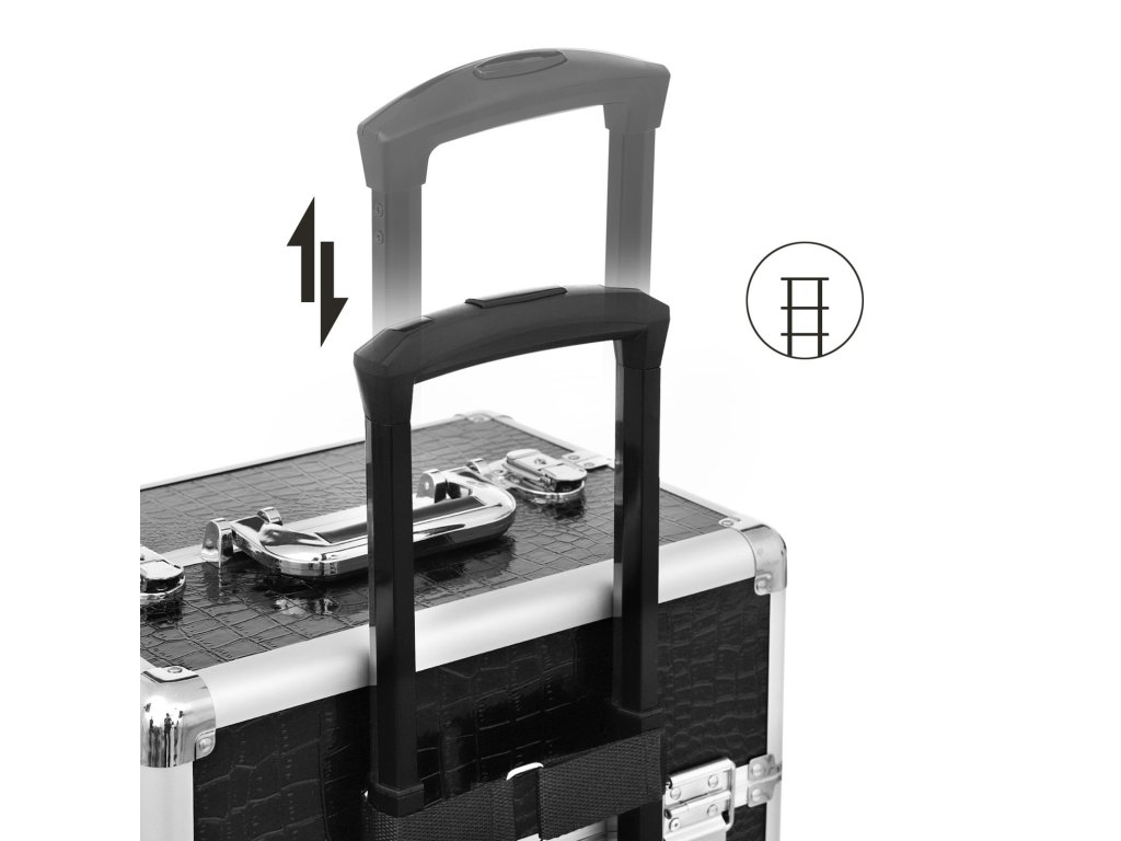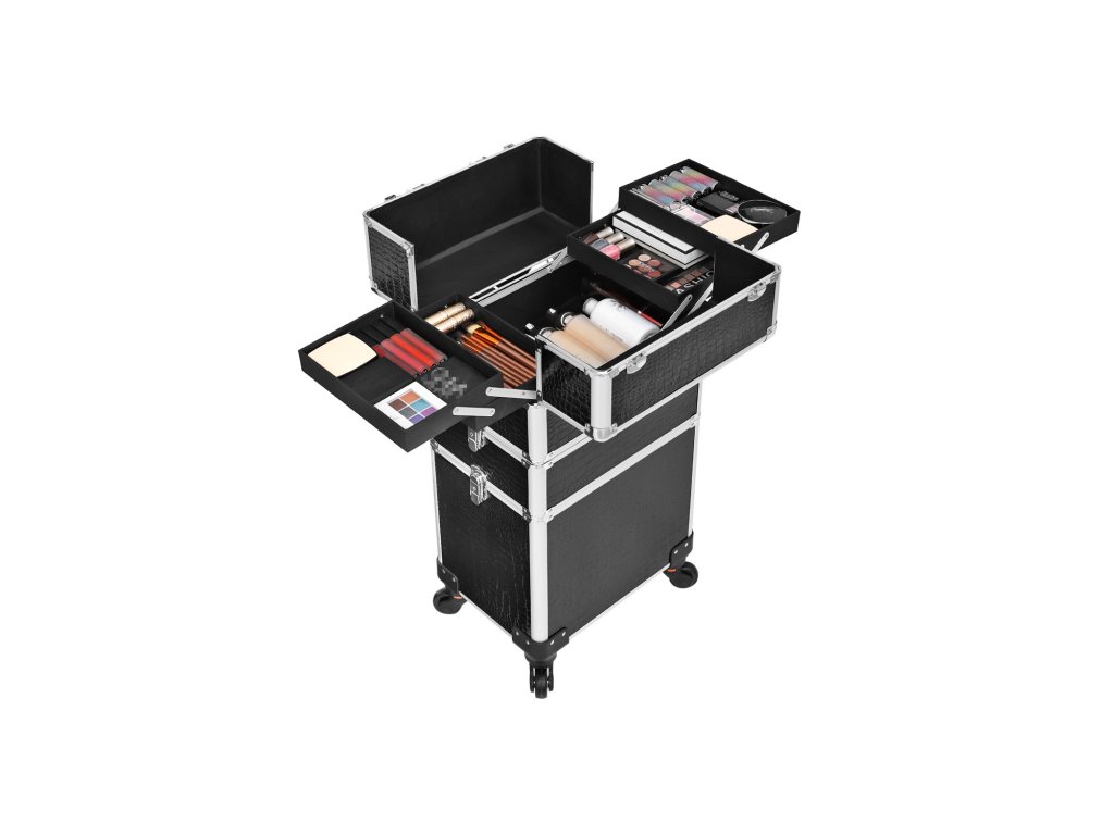 Profesionální kosmetický kufřík 4 v 1, cestovní kosmetický vozík, kosmetický vozík pro kadeřníky, uzamykatelný úložný prostor na make-up s kolečky, černý.