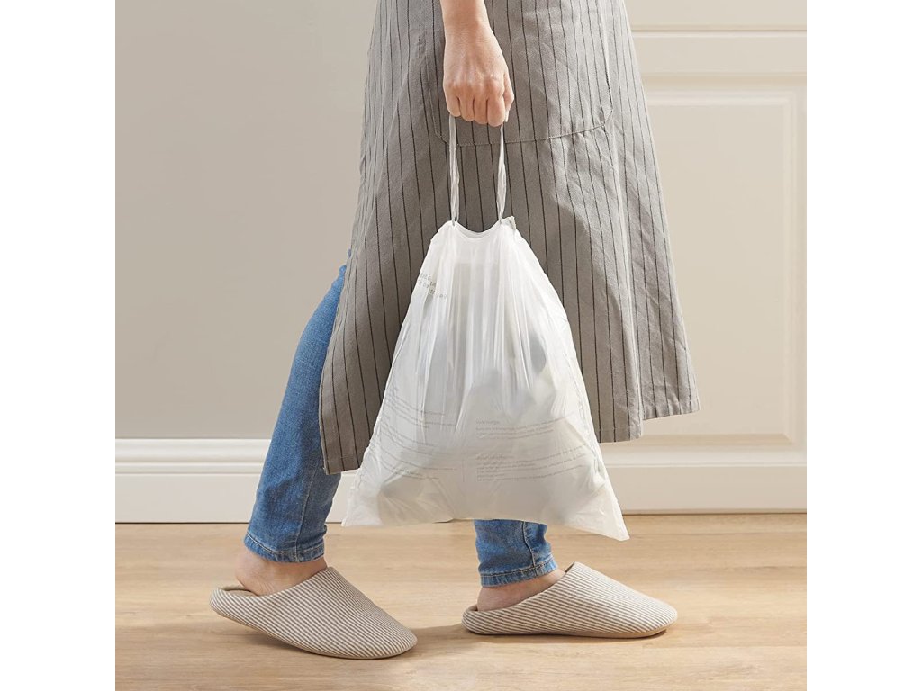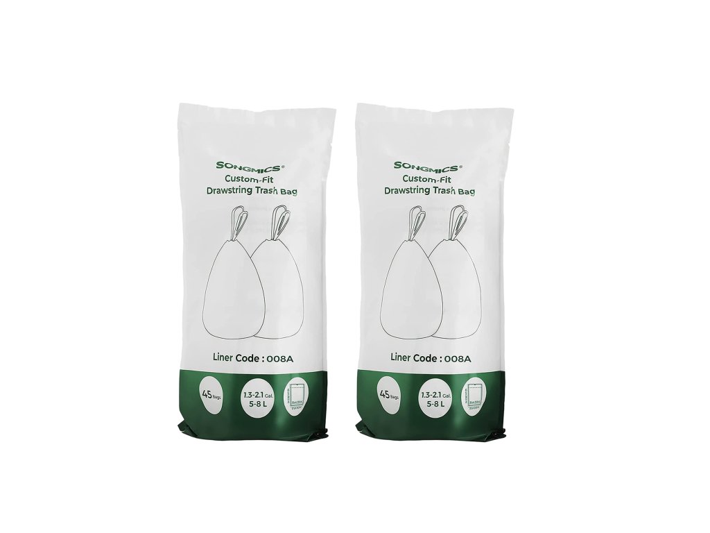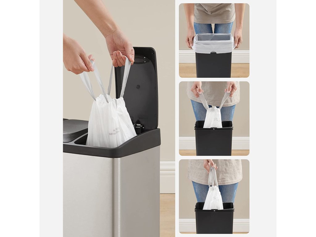 Pytle na odpadky se stahovací šňůrou, 8L pytle do 3 x 8L košů od SONGMICS a 5-8L košů kód 008A, 2 role, celkem 90 kusů, vodotěsné, do kuchyně, bílé.