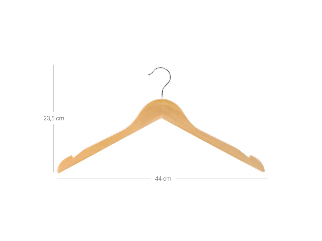 VYLEPŠTE SI OBLEČENÍ: Sofistikovaný design z masivního dřeva dělá z těchto elegantních věšáků na košile vítaný doplněk každé skříně.PLOCHÝ PROFIL: Ploché tělo, které šetří místo, pojme oděvy všech tvarů a stylů a robustní konstrukce pojme až 11 kg.100% ZÁRUKA SPOKOJENOSTI: Jsme vždy k dispozici pro poskytování profesionálního zákaznického servisu před i po nákupu, takže už nečekejte a užijte si ho hned teď!HLADKÉ ZÁŘEZY: Zářezy jsou vyříznuté a jemně opracované pro hladký povrch, který chrání i ty nejjemnější oděvy, určené pro poutka na sukně/kalhoty a ramínka na šaty.VERSATILNÍ: Otočný háček s chromovanou povrchovou úpravou se snadno zavěsí na tyče, mříže a kliky dveří.| Kategorie: | Šatní ramínka |