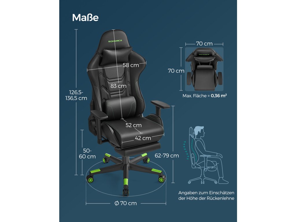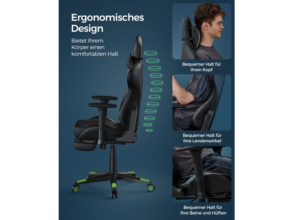 Ergonomická kancelářská židle, 70.5x71.5x126.5-136.5cm, černo-zelená Herní židle