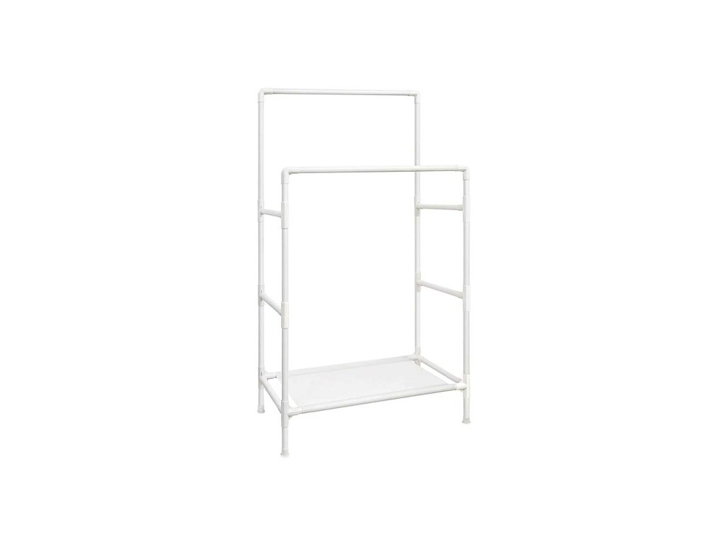 Kovový věšák na kabáty se 2 kolejnicemi a 1 policí, nosnost až 70 kg, snadná montáž, bílý.