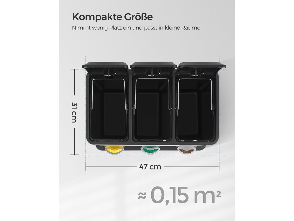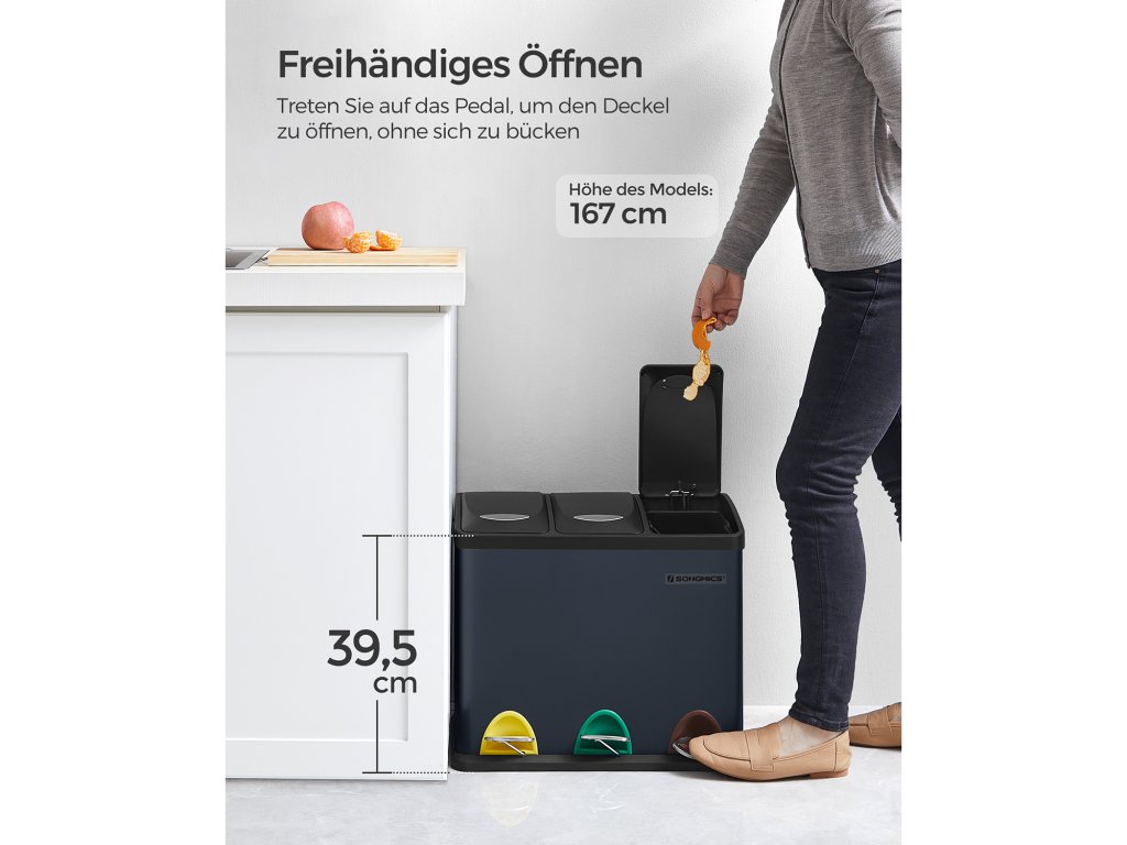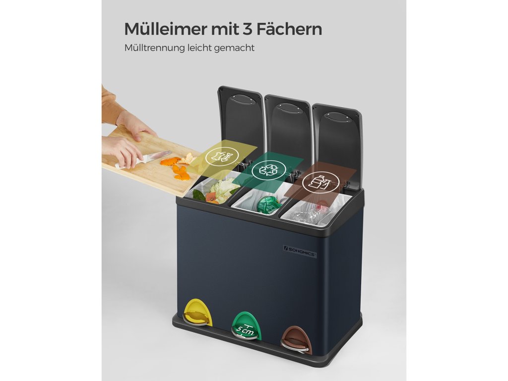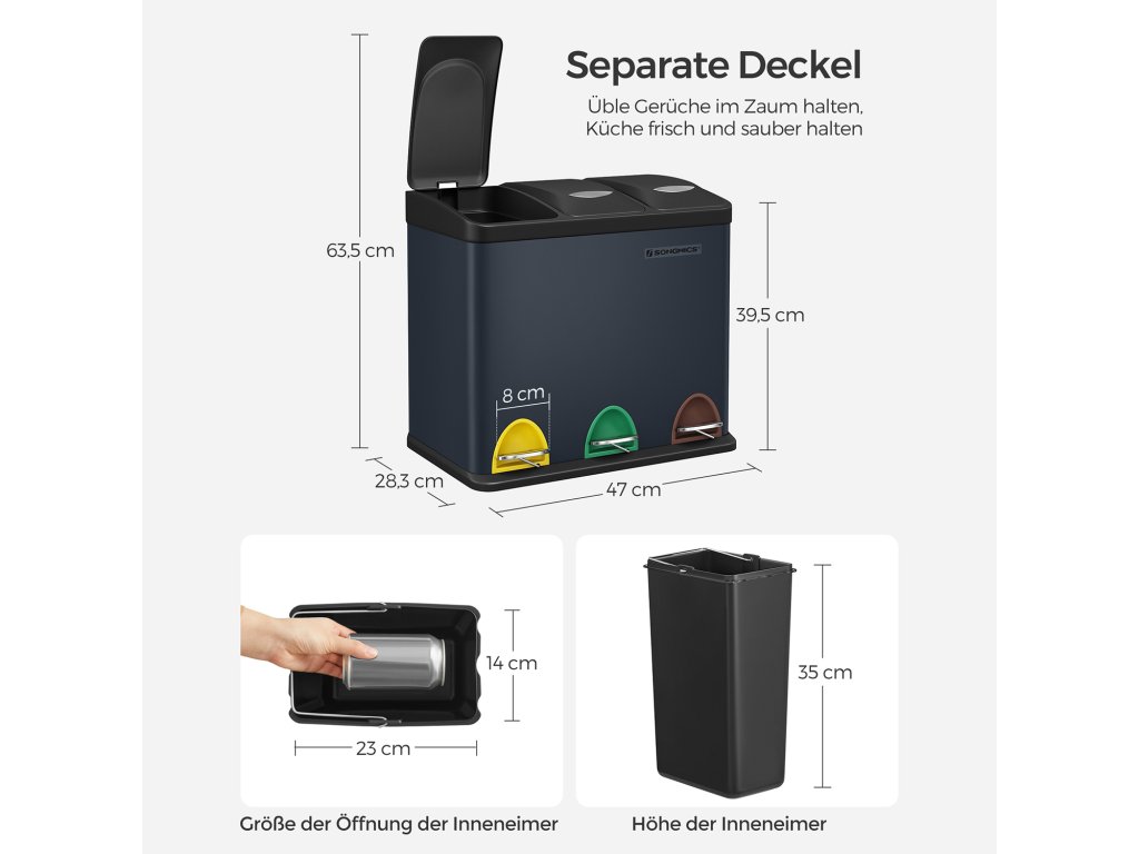 Všeuměl: Dejte sbohem svému rezavému odpadkovému koši a pozvěte tento stylový odpadkový koš 3 v 1, který oživí vaši kuchyň, kancelář nebo dokonce garáž - obsahuje, skrývá a třídění odpadu - vytvořte si vlastní recyklační stanici!Silný koš se vzduchotěsným víkem: Tento odpadkový koš s robustním ocelovým tělem vydrží roky, aniž by vás zklamal, a vzduchotěsné víko skvěle udržuje pachy.Seřadit podle barvy: Nabízí skvělou příležitost naučit děti recyklovat a dospělým snížit nároky na úklid. tento pedálový koš se 3 barevnými pedály pomáhá bezstarostně třídit různé druhy recyklace a rychle identifikovat přihrádky.Jednoduchý slib: Ouch! Sáček s vložkou sklouzl, roztrhl se a omylem vytvořil v kbelíku mastnou louži? Nebojte se, součástí každého oddělení je vyjímatelný vnitřní kbelík s uchy. což znamená, že vyprazdňování a čištění nebude tak obtížné.Co získáte: Koš na odpadky o objemu 24 l se třemi sekcemi, různobarevnými pedály a vyjímatelnými vnitřními kbelíky pro snadnou likvidaci odpadu a bezproblémovou recyklaci.| Kategorie: | Odpadkové koše |