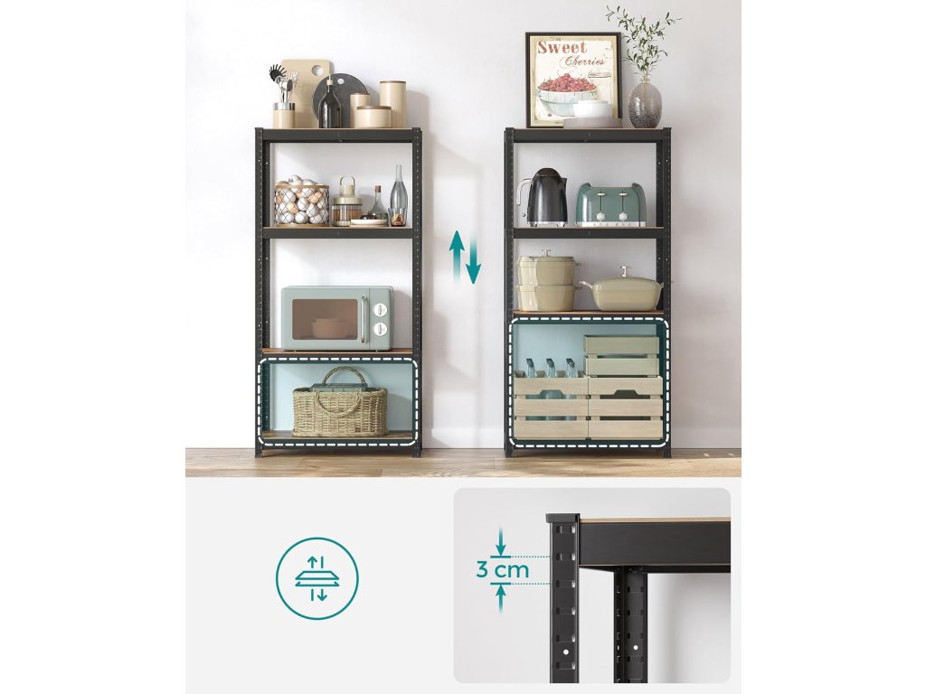Robustní konstrukce Robustní police z dřevotřískových desek jsou podepřeny ocelovým rámem s dalšími výztužnými tyčemi, každá police unese až 130 kg a bezpečně podepře barvy, nářadí. a fitness vybaveníRustikální vzhled Police regálu mají povrchovou úpravu s rustikální hnědou kresbou dřeva, která dodá stylový efekt každému prostoru, takže se můžete rozloučit s nudným vzhledem.Rozděleno na 2 jednotky Regál lze rozdělit na dvě samostatné nízké police, z nichž jedna je umístěna v kuchyni jako stojan pro troubu a mikrovlnnou troubu a druhá v pracovně pro uložení knih, rostlin. tiskárna a dalšíNastavitelné police Montáž úložného regálu je snadná, protože díly lze spojit pomocí drážkových spojů a výšku mezi policemi lze nastavit pro flexibilní skladování.Sada proti překlopení Přiložená sada proti překlopení vám pomůže připevnit polici ke stěně, aby byla stabilnější pro bezpečné používání.| Kategorie: | Regály a poličky |