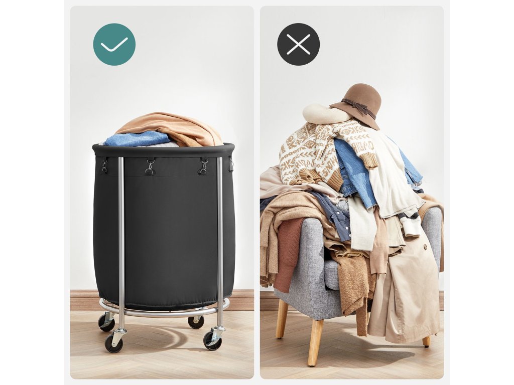 Dostatečný úložný prostor? Spousta! Tento koš na prádlo o rozměrech 60 x 81 cm (průměr x výška) nabízí dostatek úložného prostoru pro oblečení a ložní prádlo. od kabátů a svetrů vašeho partnera až po šály a ložní prádlo vašich dětí.