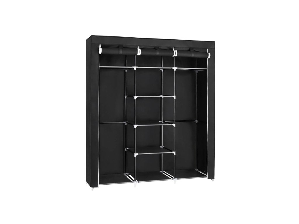 Velká kapacita a spousta úložného prostoru - Rozměry výrobku: 150 x 175 x 45 cm (š x v x h). Mimořádně velká skládací skříň nabízí dostatek prostoru. Díky rovnoměrnému rozložení hmotnosti unese každá přihrádka až 5 kg a kolejnice na oblečení až 15 kg.Vysoce kvalitní ocelové trubky, robustní plastové spojky - ocelové trubky s hladkým povrchem jsou odolné proti korozi a opotřebení. Plastové konektory jsou vyrobeny z vysoce kvalitního polypropylenu, jsou bez zápachu, odolné vůči tlaku, teplu, robustní a stabilní.