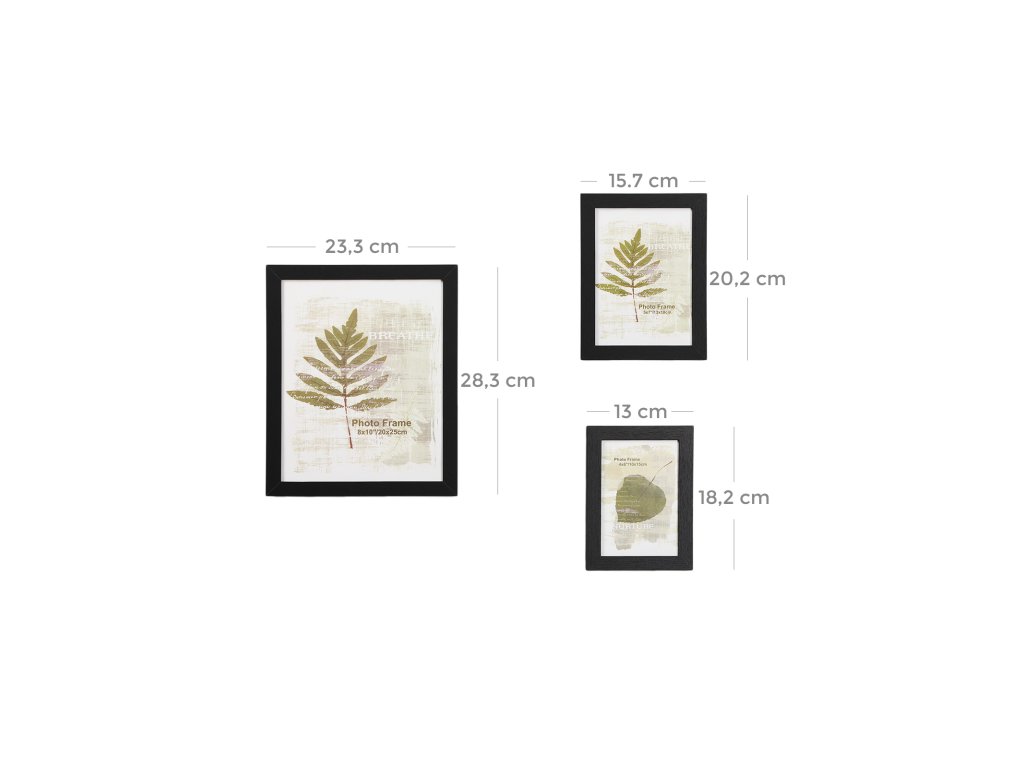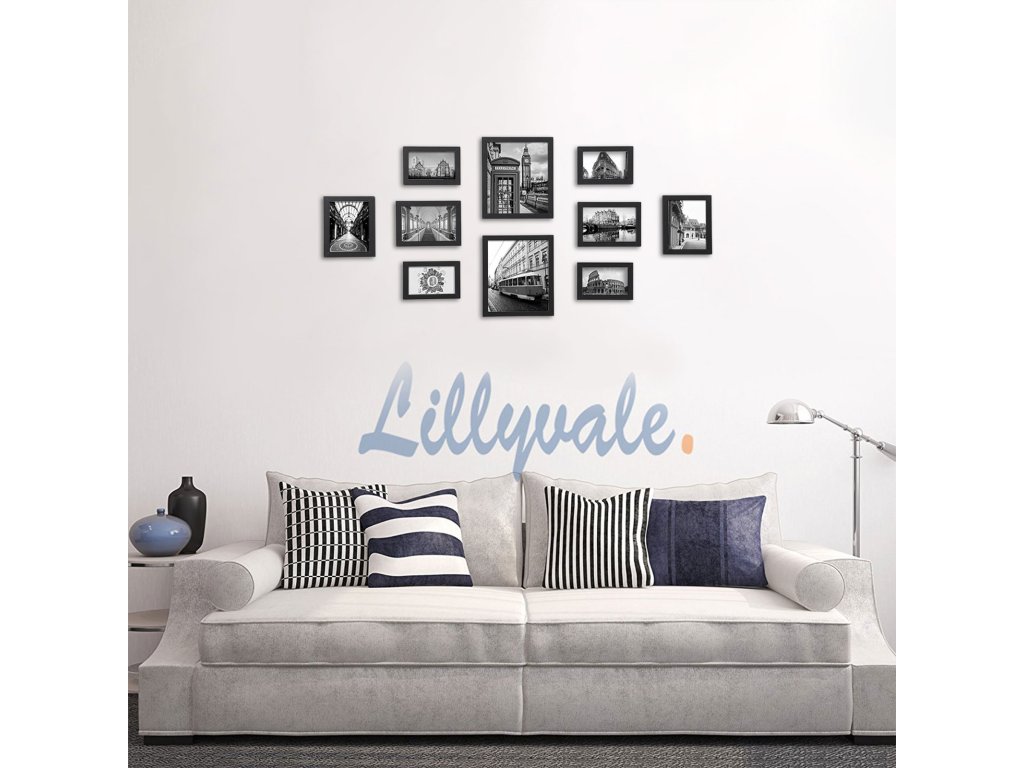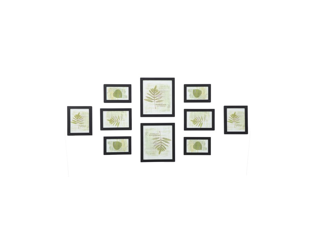 Sada 10 fotorámečků - dva (20 x 25 cm), čtyři (13 x 18 cm), čtyři (10 x 15 cm), černá.