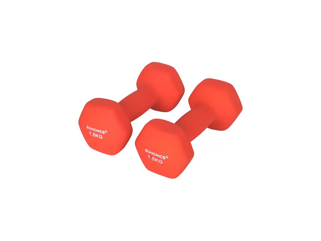 SONGMICS Sada 2 činek, 2 x 1,5 protiskluzové neoprenové ruční činky s matným povrchem, domácí cvičení, fitness cvičení, oranžová SYL63OG