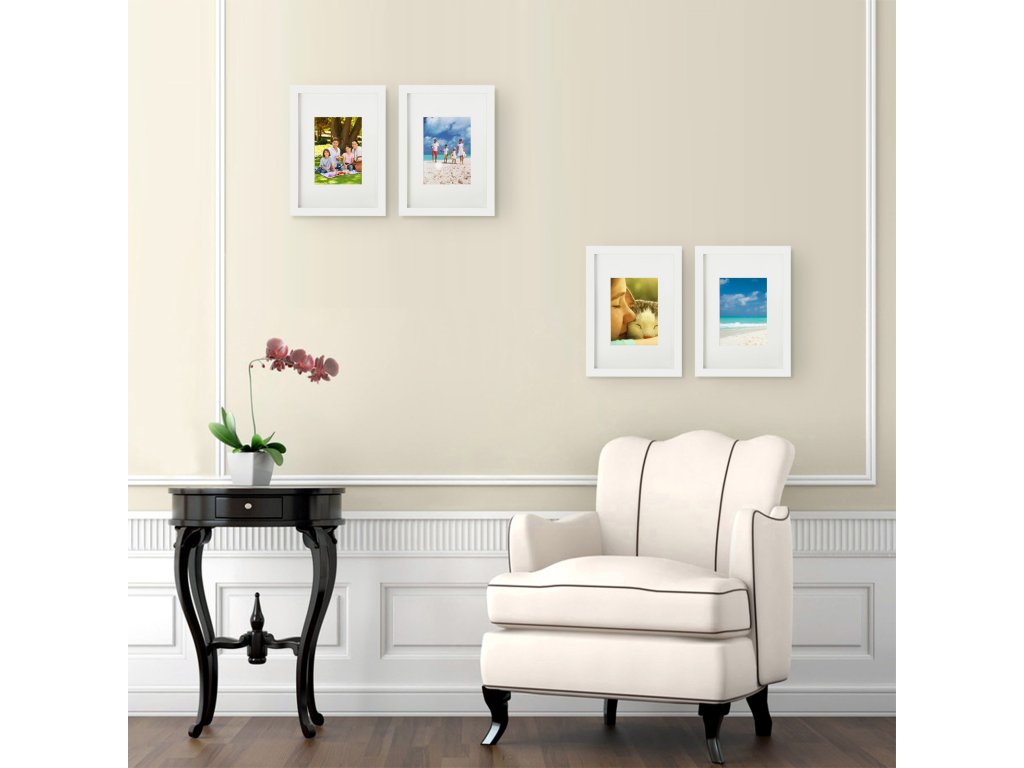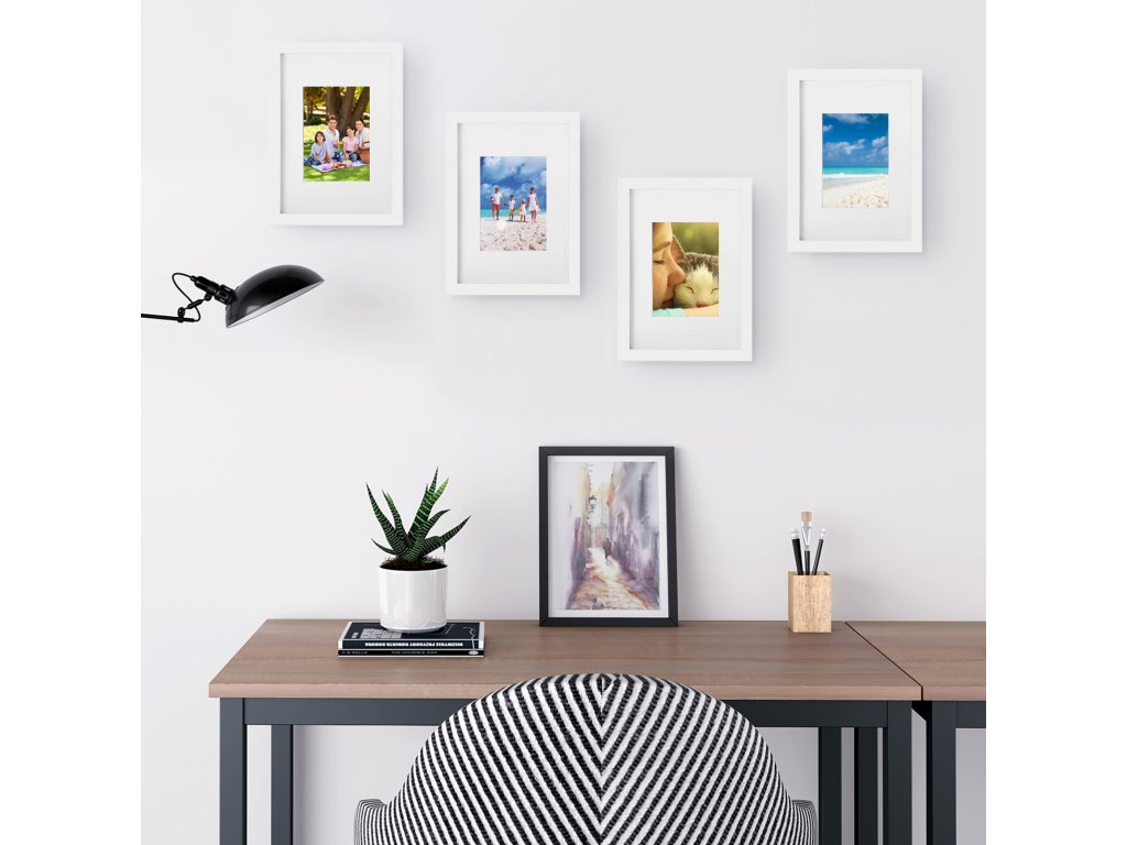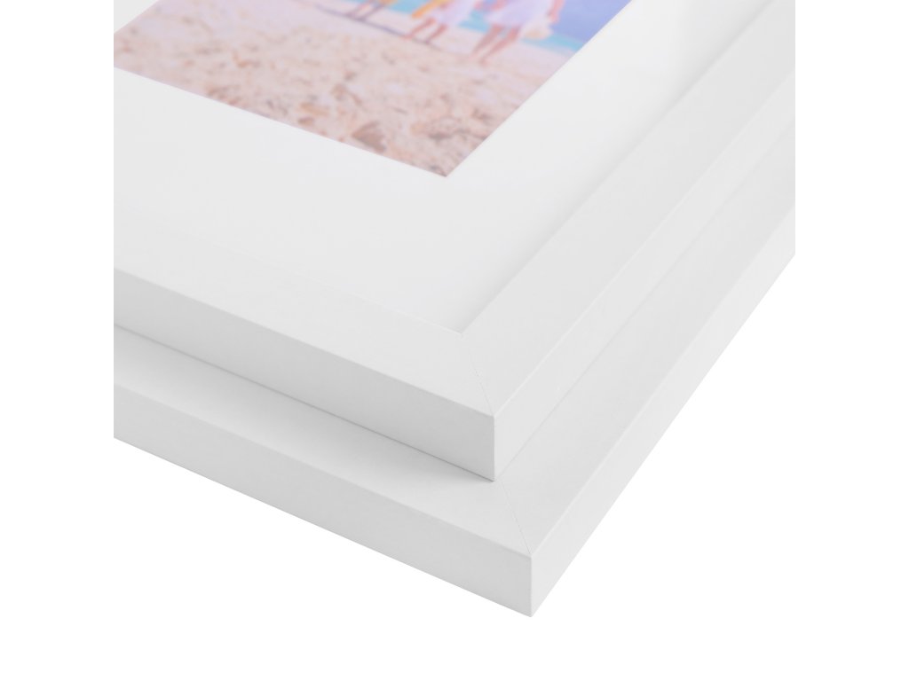 Sada 2 fotorámečků, A4 (21x29,7 cm) bez podložky, (13x18 cm) s podložkou, skleněná přední strana, pro domácnost a kancelář, bílé fotorámečky z MDF.