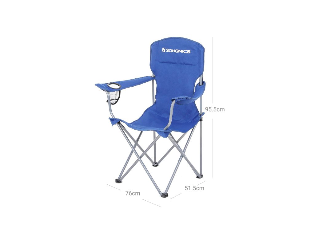 Sada 2 skládacích kempingových židlí, pohodlná, odolná konstrukce, max. nosnost 150 kg, s držákem na kelímek, venkovní židle, modrá.