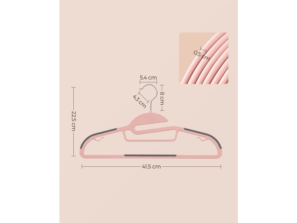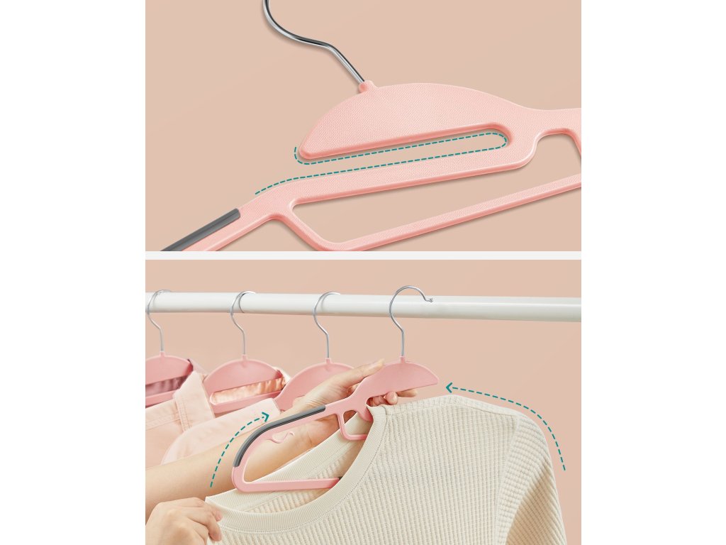 Sada 20 plastových věšáků, 41.5x22.5x0.5cm, růžová Plastová ramínka na oblečení