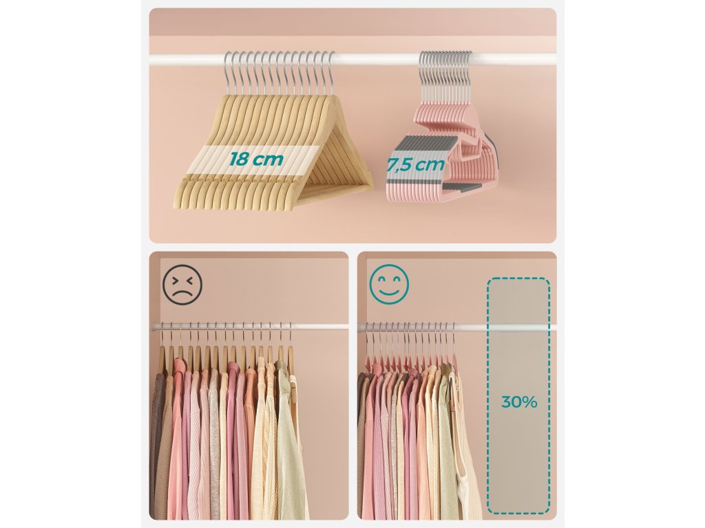Otvor ve tvaru písmene U Speciální otvor ve tvaru písmene U je ideální pro oděvy s těsnými límci a zabraňuje jejich vytahování nebo deformování; lze jej také použít pro zavěšení šátků a opasků.Protiskluzový Gumový povlak na ramenou a spodní tyči zabraňuje sklouznutí oblečení; malé boční háčky jsou určeny k zavěšení podprsenek nebo špagetových šatů.360° otočné háčky Vysoce kvalitní kovové háčky na ramínkách se otáčejí o 360° pro snadné zavěšení a přístup k oblečení.Úspora místa Tato vysoce kvalitní plastová ramínka mají tloušťku pouhých 0,5 cm a na středovou tyč můžete zavěsit bundy a kalhoty, ale i šátky a kravaty. umožňuje zavěsit více oděvů do stejné skříně.Co získáte Sada 20 plastových ramínek s otvory ve tvaru U, která jsou pevná a odolná pro celoroční organizaci vašeho oblečení.| Kategorie: | Šatní ramínka |