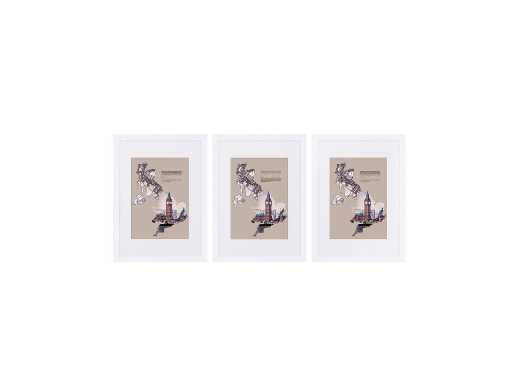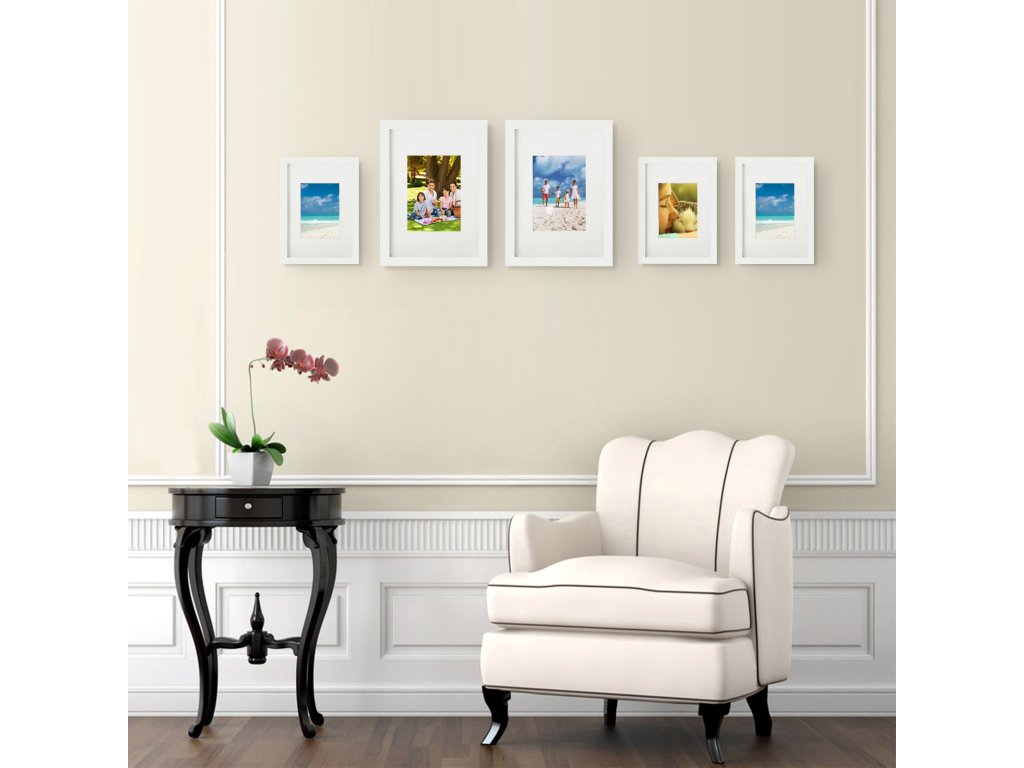 Sada 3 fotorámečků, A3 (29,7 x 42 cm) bez podložky, A4 (21 x 29,7 cm) s podložkou, skleněná přední strana, pro domácnost a kancelář, bílé fotorámečky z MDF.