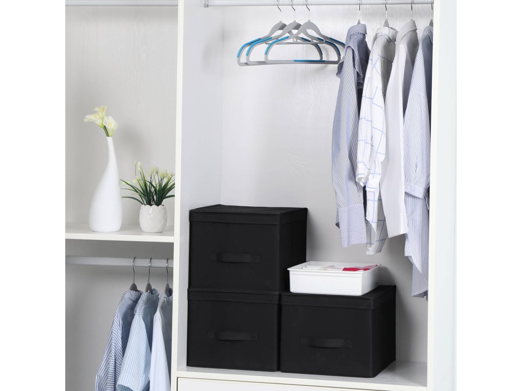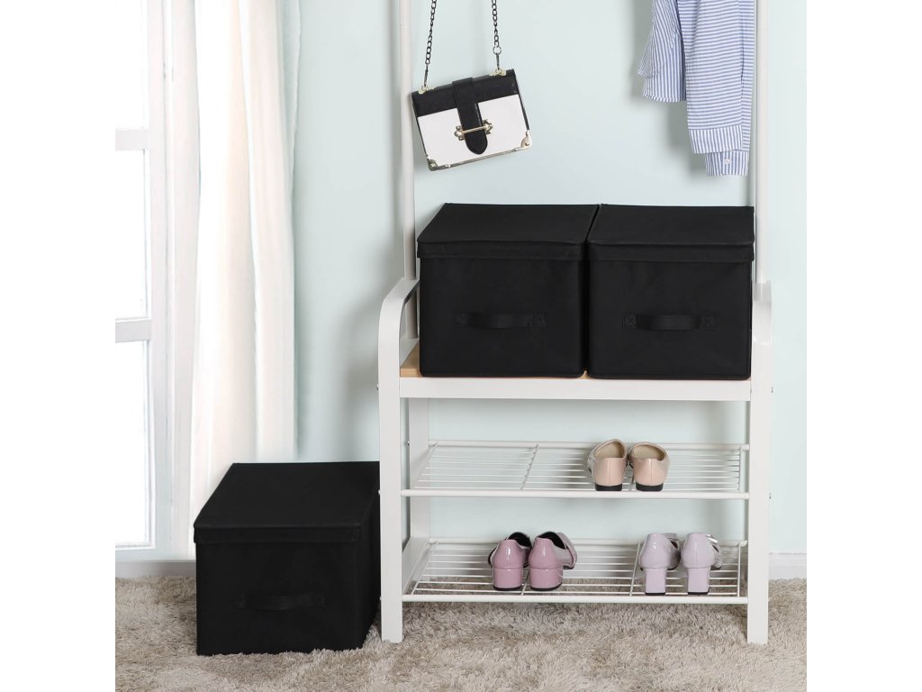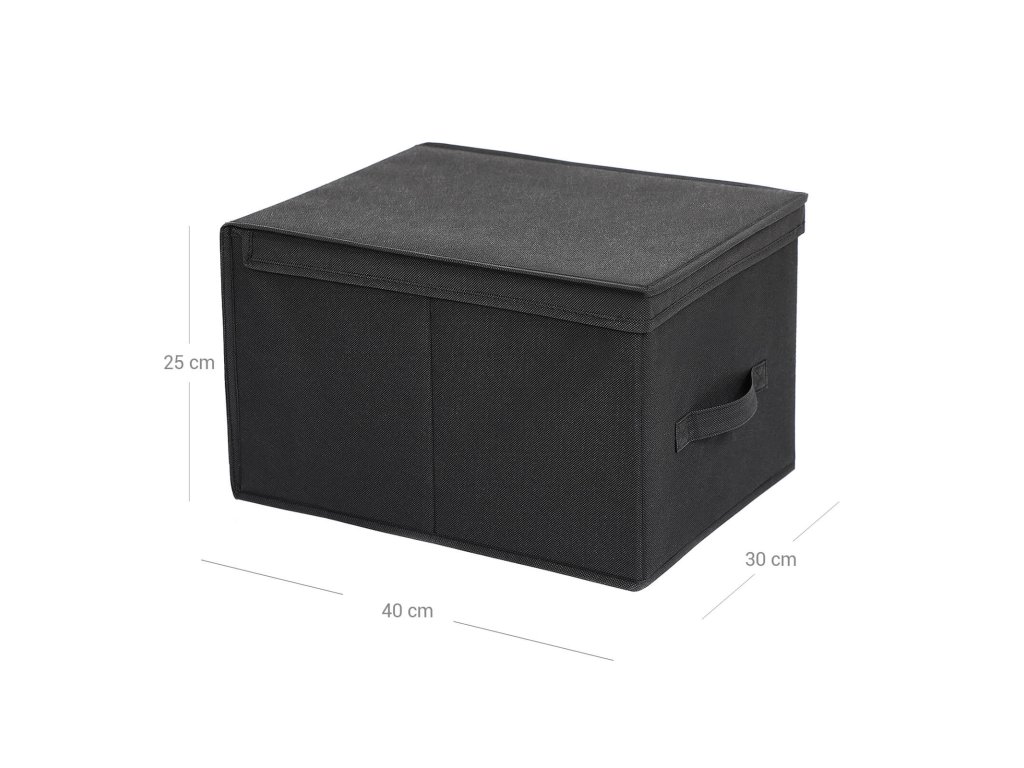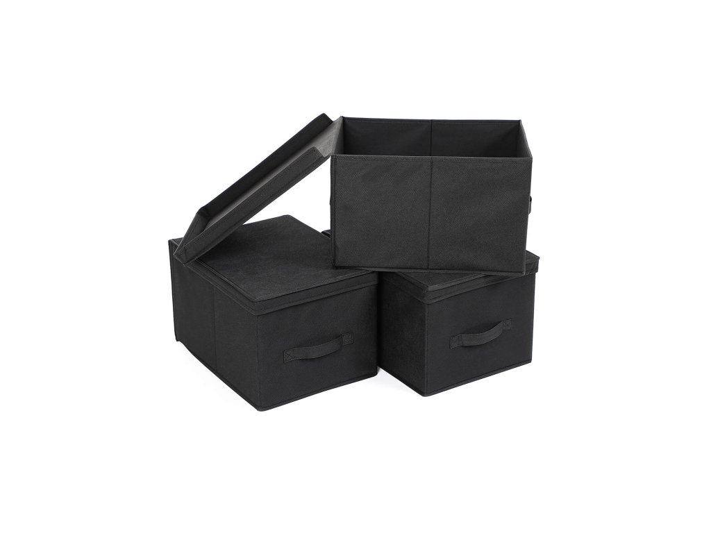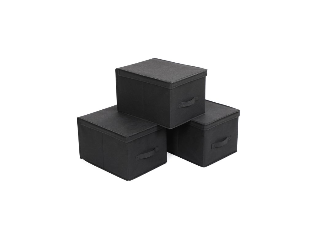 Sada 3 skládacích úložných boxů s víkem, látkové kostky s držáky štítků, organizér úložných boxů, 40 x 30 x 25 cm, černá.