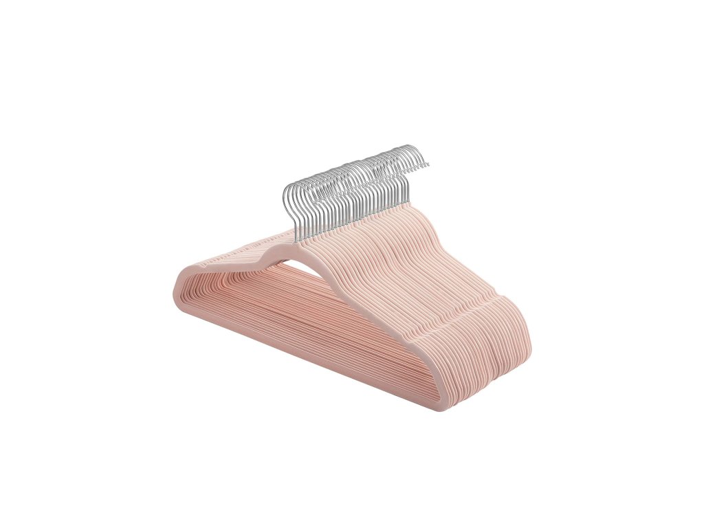 Sada 30 sametových ramínek, 42 cm dlouhá, tenká a odolná, s vysokou nosností, s háčky otočnými o 360°, na kabáty košile obleky, růžová, 43,5 x 0,6 x 22,5 cm.