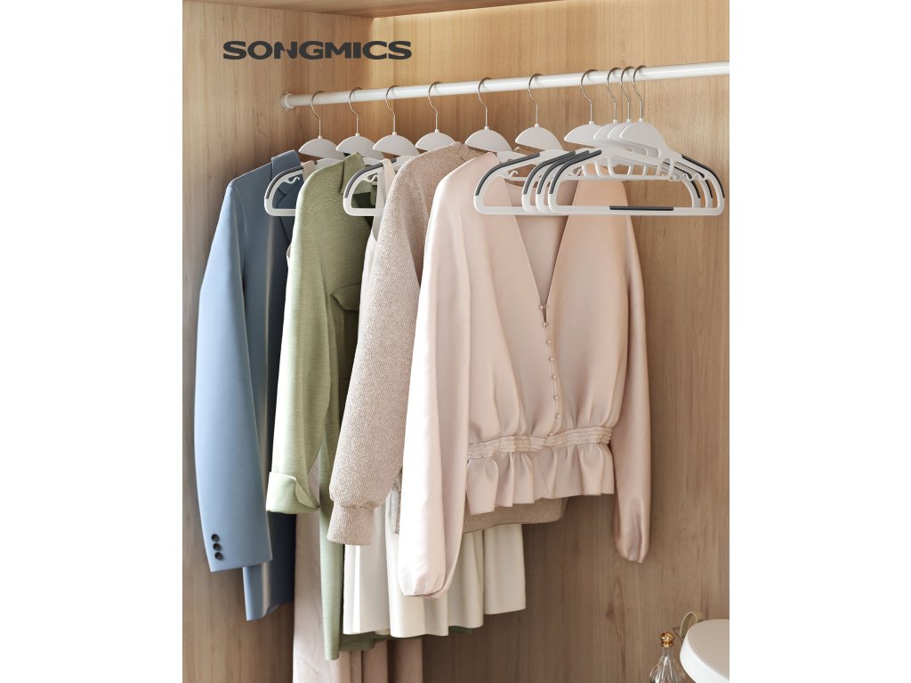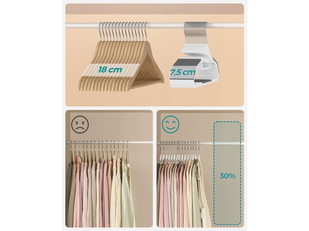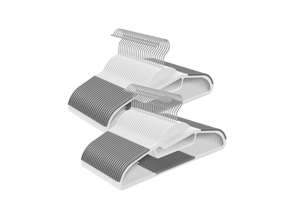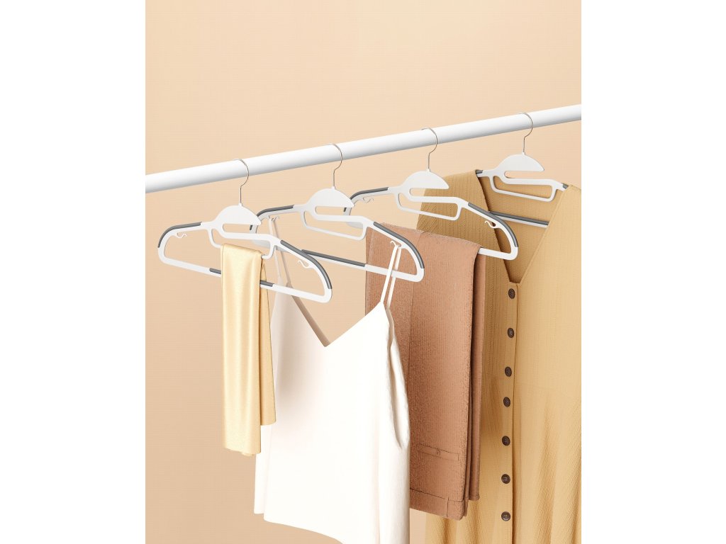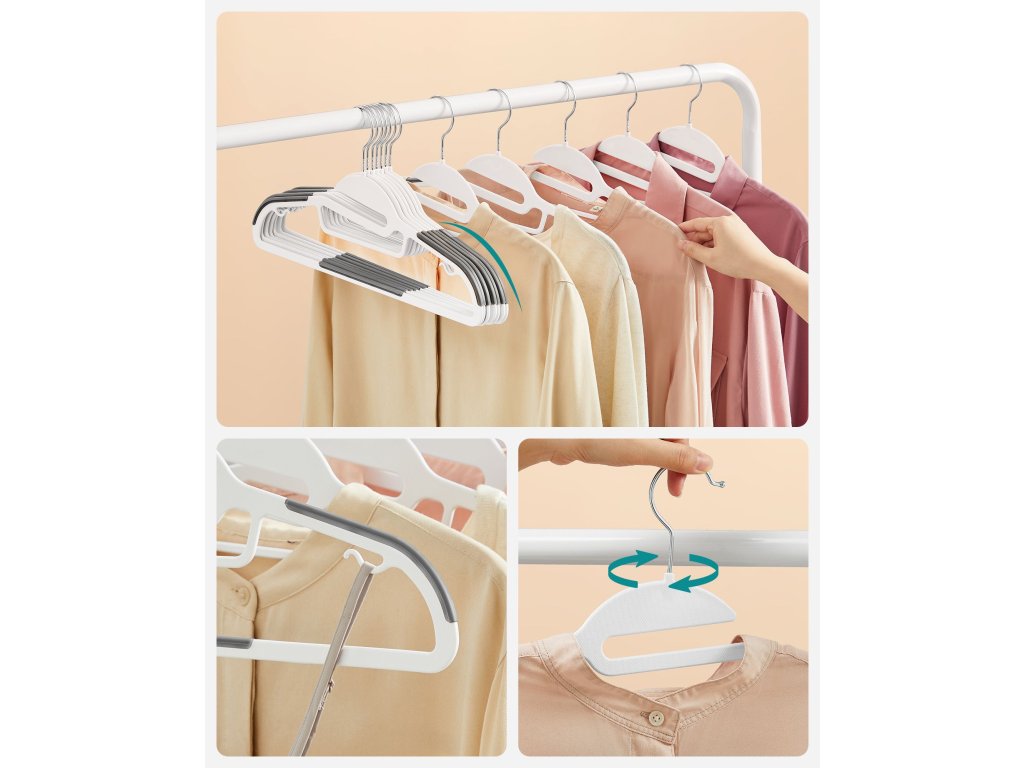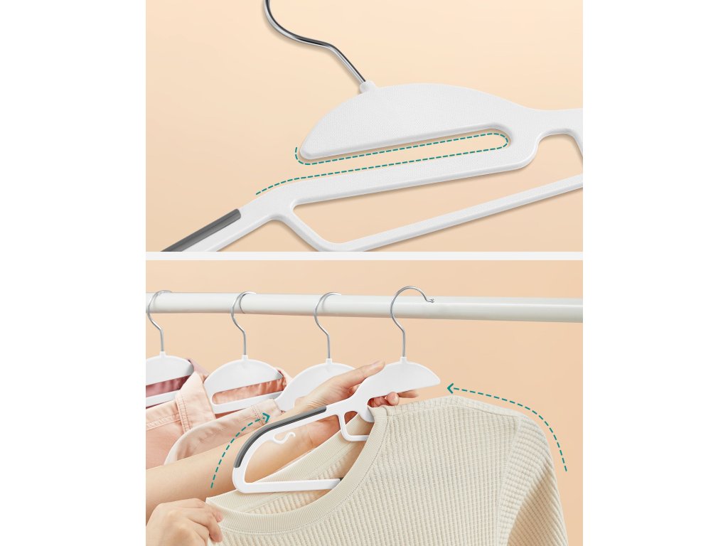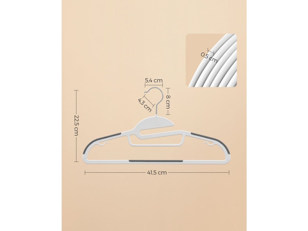 Sada 50 plastových věšáků, věšáky na kabáty s otvorem ve tvaru U, protiskluzové, šetřící místo, tloušťka 0,5 cm, délka 41,5 cm, háček otočný o 360°, bílá a tmavě šedá.