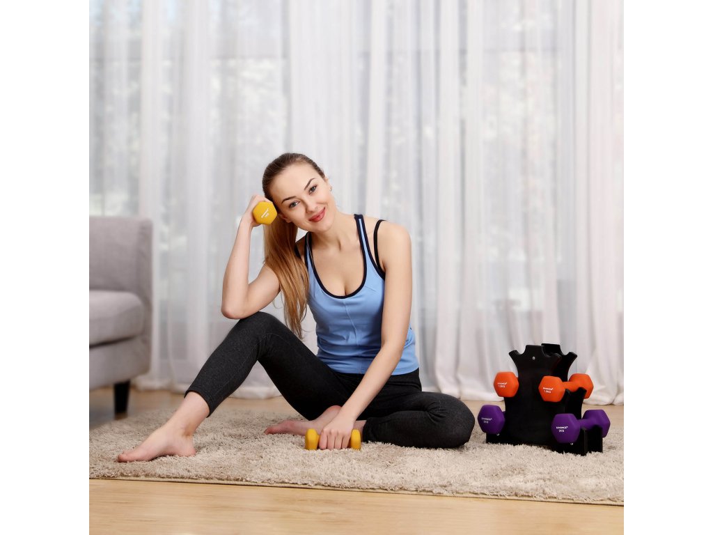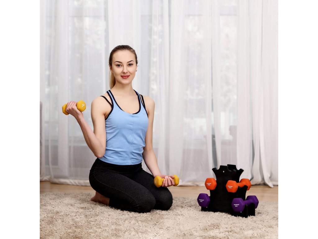 15minutové cvičení Nemáte čas jít do posilovny? Probuďte své tělo za 15 minut poté, co jste celý den seděli v klidu u počítače. tato sada barevných činek je ideální pro domácí fitness inspirované posilovnou.Vejde se všude Kromě 6 činek je součástí balení také kompaktní, ale odolný skladovací stojan. Po spálení kalorií nebudete muset tuto sadu na vážení schovávat v úzkém koutě - ale je dostatečně štíhlá i na to!.Bezpečné držení Tvarované rukojeti s měkkým gumovým obalem pomáhají zlepšit váš úchop, i když se zpocenýma rukama zvedáte nahoru a dolů pro více opakování; také tlumí nárazy na podlahovou desku (nebo nohy);Pevná šestihranná figura Šestiúhelníkový tvar se při provádění pohybů, jako je řada odpadlíků, neodkutálí a nezaskočí vás pod nohama.Co získáte Sada 6 činek - 2 x 1 kg (žlutá), 2 x 1,5 kg (oranžová) a 2 x 2 kg (fialová), silný stojan a možnost, jak doma zhubnout, posílit nebo zpevnit svaly.| Kategorie: | Činky |