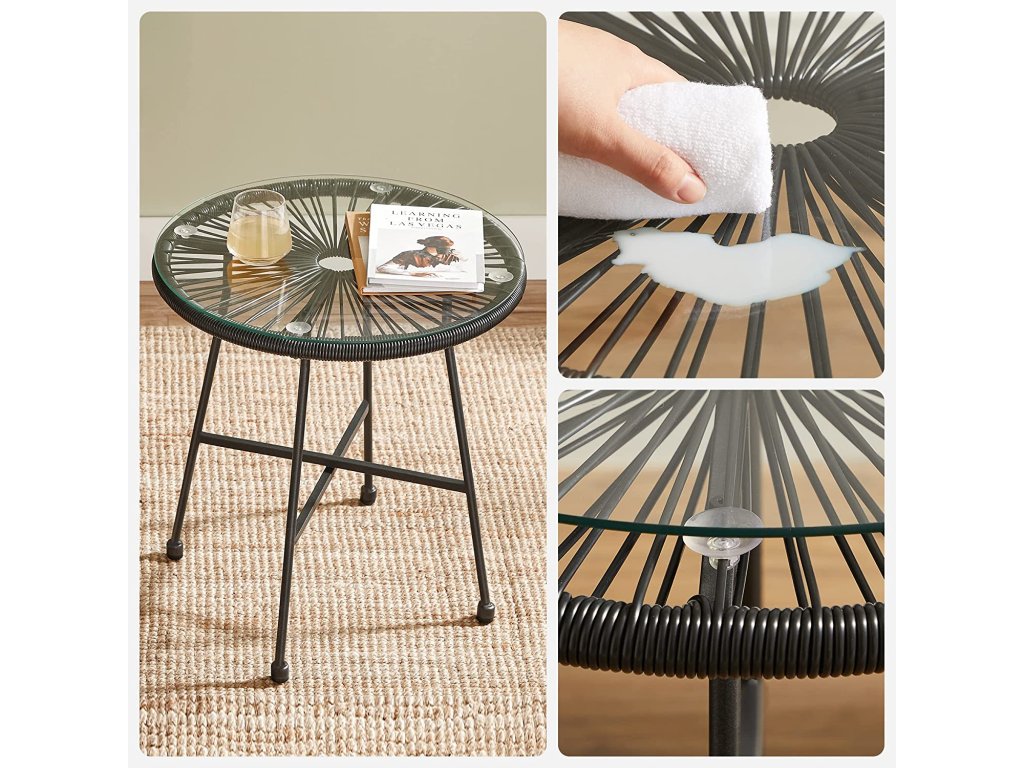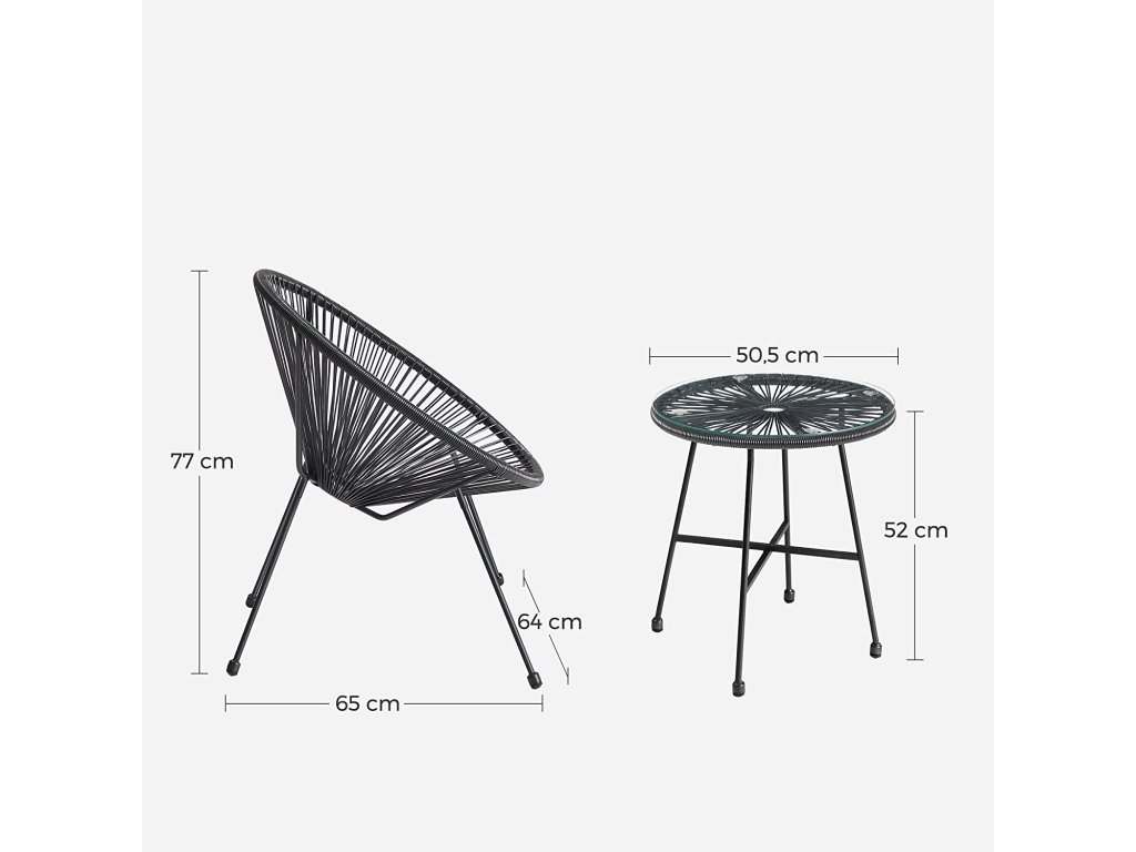 Ponořte se do jeho útulnosti: Díky ergonomickému designu, širokému sedáku a pružným PE šňůrám vám tato sada venkovních židlí nabízí oporu a pohodlí, které si zasloužíte. Opřete se o záda, zkřižte nohy a nechte stres odplout.Její stabilita spočívá ve stabilitě...Nohy z pevné oceli odolné proti korozi a lehký, ale odolný PE kabel, které společně unesou až 130 kg na židli; boční stolek má díky desce z tvrzeného skla nosnost až 60 kg;