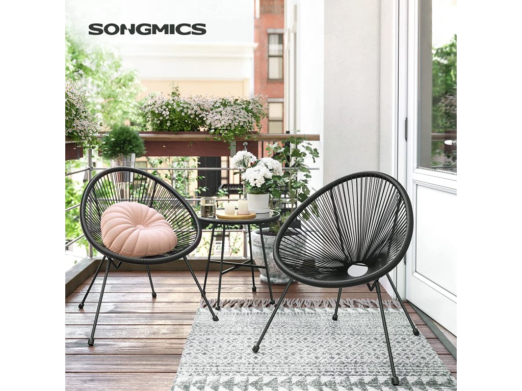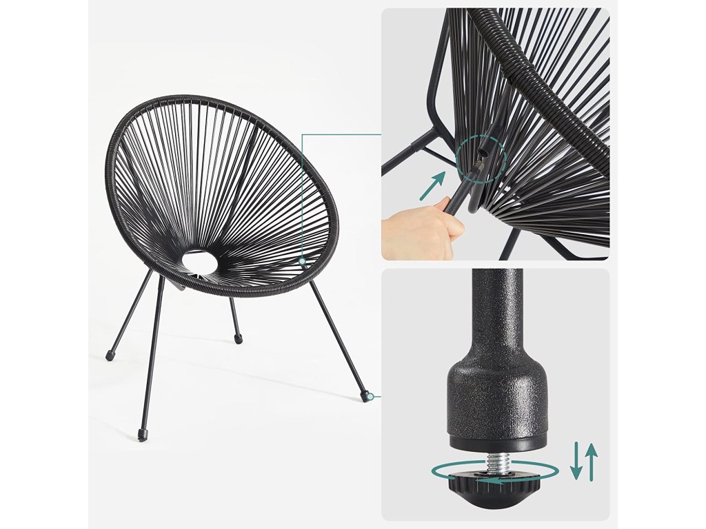 Hurá! Montáž dokončena: Sestavení těchto židlí Acapulco není žádný velký úkol! Stačí přišroubovat nohy k sedadlu - není potřeba žádné nářadí - a montáž je hotová za pár minut!Jednoduchá elegance: Tato sada židlí Acapulco je ikonou mexického designu 50. let. Díky vzdušnému vzhledu a jednoduchým geometrickým liniím se tato oku lahodící sada terasového nábytku snadno kombinuje s jinými styly nábytku.Uvnitř nebo venku? Je to na vás! Tuto sadu křesel Acapulco můžete použít k... pozorování západu slunce na verandě, schoulení se v prosluněném koutě obývacího pokoje, vytvoření zasněné ložnice. nebo si jen odpočinout u koktejlů na balkoně.