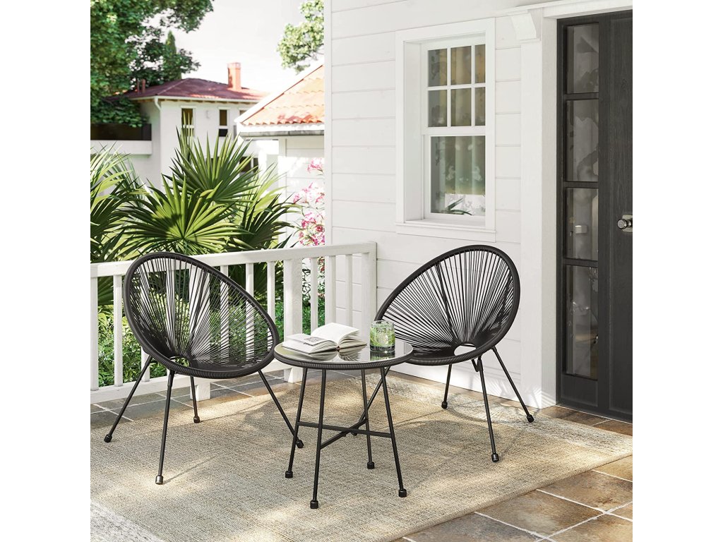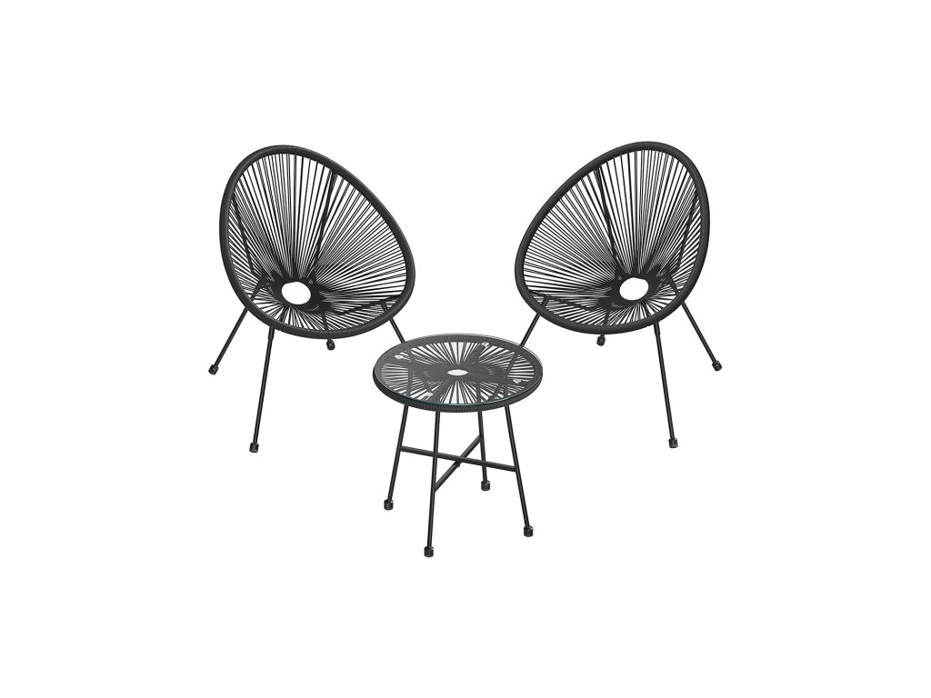 Sada zahradního nábytku na terasu, 3 kusy, židle Acapulco, venkovní posezení, skleněný stůl a 2 židle, vnitřní a venkovní konferenční sada, černá.