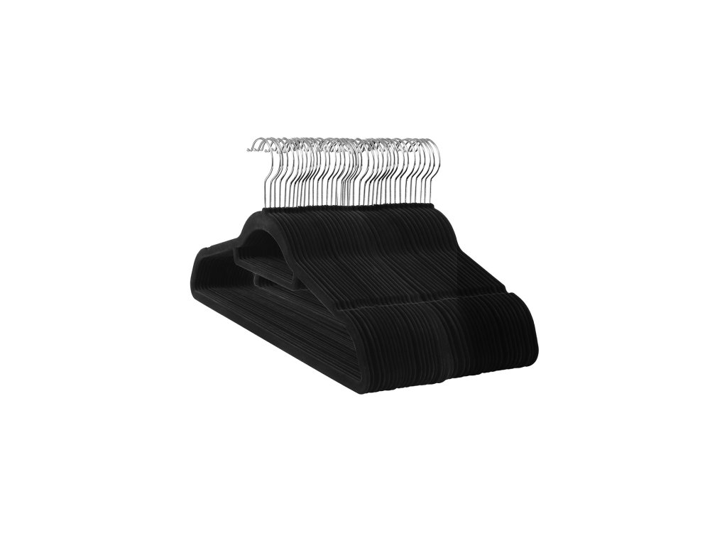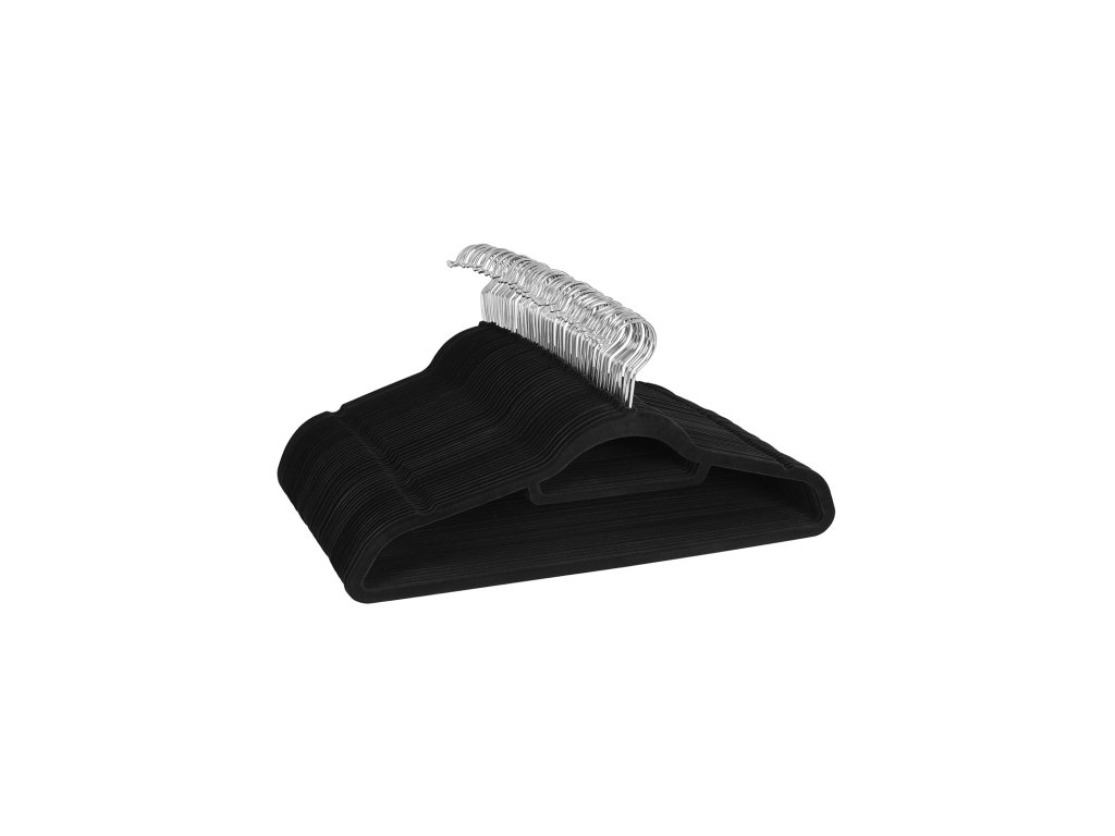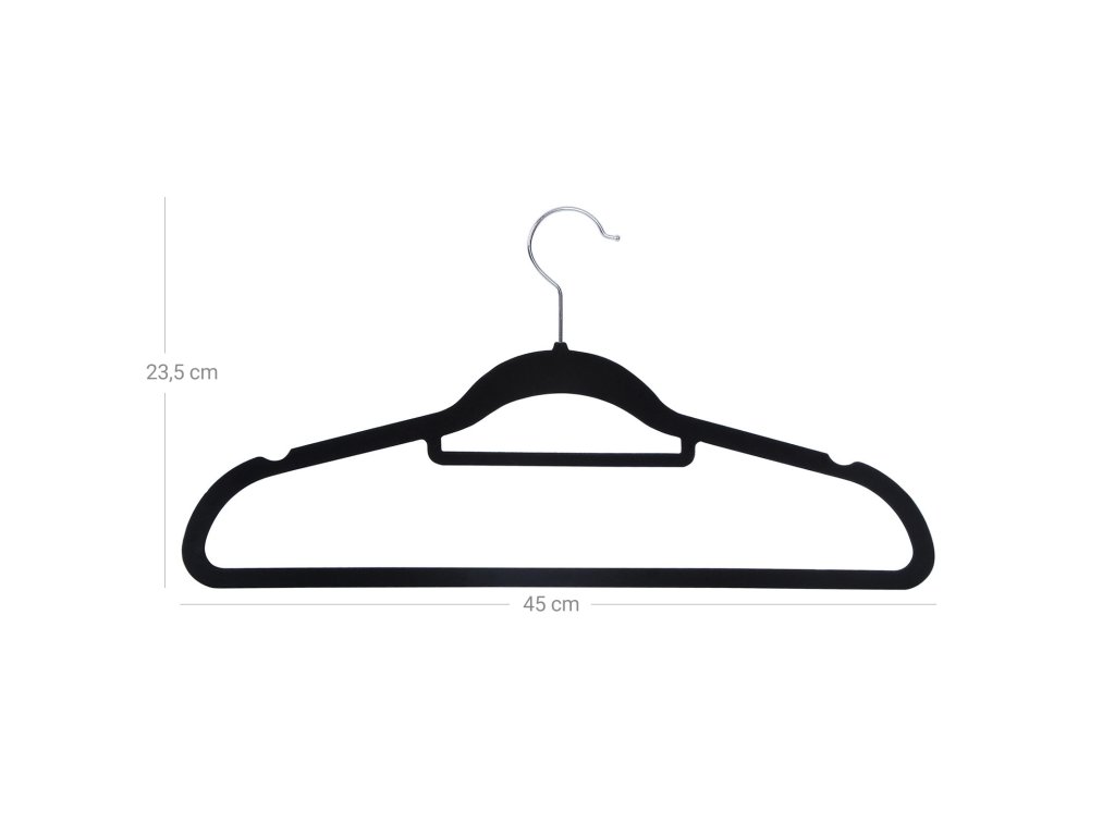 Sametová ramínka, sada 20 ramínek na oděvy, protiskluzová, s tyčí na kravatu a 360° otočným háčkem, šetří místo, tloušťka 0,6 cm, délka 43,5 cm, na šaty kalhoty, černá.