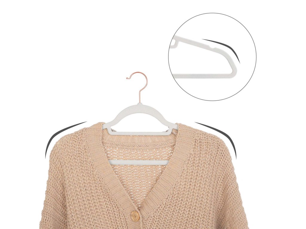 Protiskluzový povrch Sametový povrch ramínek zvyšuje tření a protiskluzové drážky na ramenou zabraňují sklouznutí oblečení - dokonce i hedvábných košil.Štíhlé, ale pevné Tato ramínka na šaty jsou vyrobena z odolného plastu ABS, jsou štíhlá, ale velmi pevná; každý věšák má maximální statickou nosnost 5 kg, takže na něj lze bez problémů pověsit i těžké zimní kabáty;Úspora místa Každé sametové ramínko má štíhlý profil, takže na stejném místě ve skříni můžete pověsit více oblečení; středovou tyč lze použít na šátky nebo kravaty.Růžově zlaté háčky Lesklé růžově zlaté háčky se otáčejí o 360°, pomáhají vám úhledně pověsit oblečení a zároveň dodávají vašemu šatníku trochu lesku.Co získáte Sada 50 vysoce kvalitních sametových ramínek na oblečení s lesklými háčky z růžového zlata, které jsou pevné a těžko se lámou, a lepší způsob, jak uspořádat svůj šatník.| Kategorie: | Šatní ramínka |