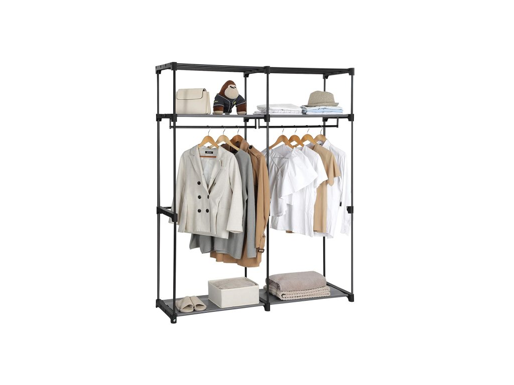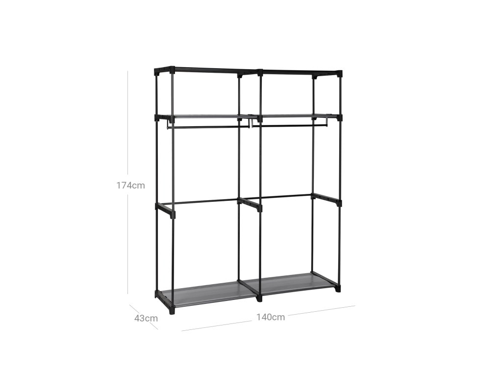 Šatní skříň, skříň na oblečení do ložnice se 2 kolejnicemi na oblečení, látková přenosná skříň, skládací, věšák na oblečení, do šatny, 43 x 140 x 174 cm, šedá.