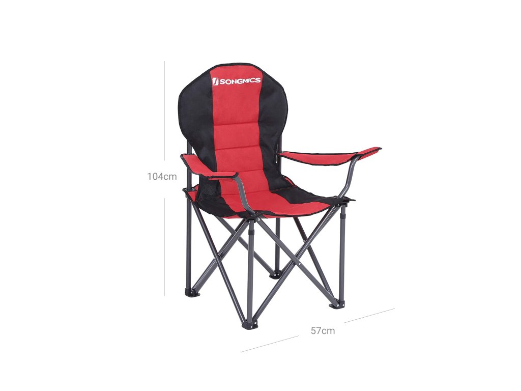 Skládací kempingová židle, s pohodlným houbovým sedákem, držák na kelímek, odolná konstrukce, maximální nosnost 250 kg, venkovní židle, černá.