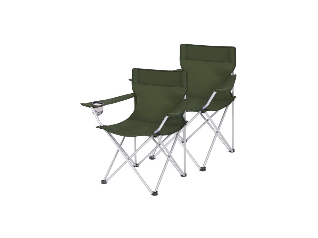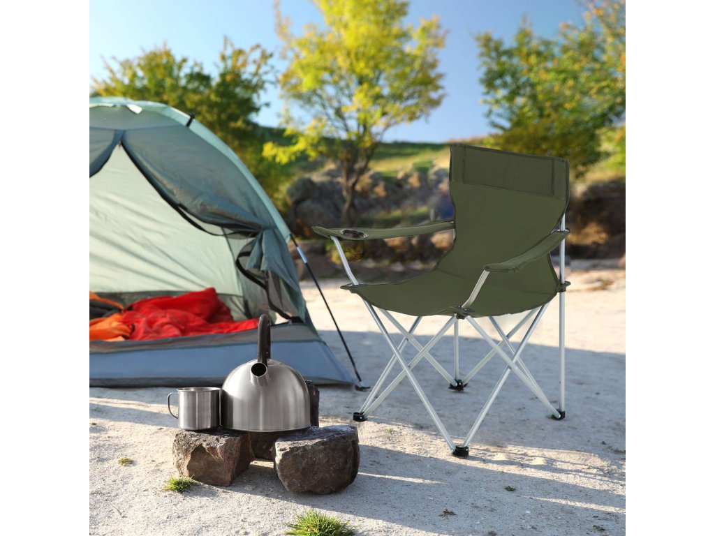 Skládací kempingové židle, sada 2 venkovních židlí, s područkami, držák na kelímek, přenosné, nosnost 120 kg, pro kempování, zahradu, rybaření, pláž, balkon, vojenská zelená.