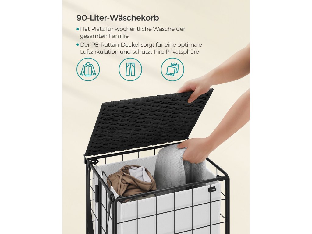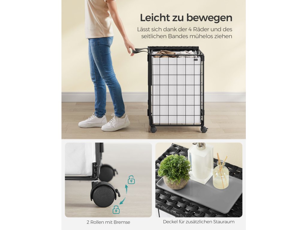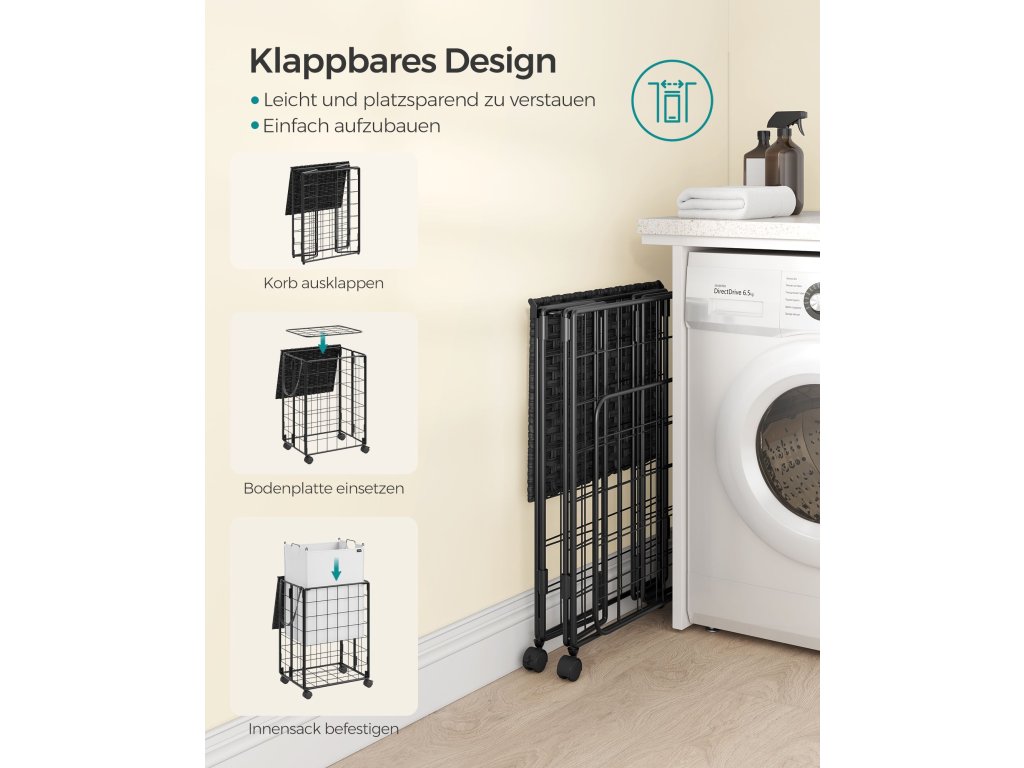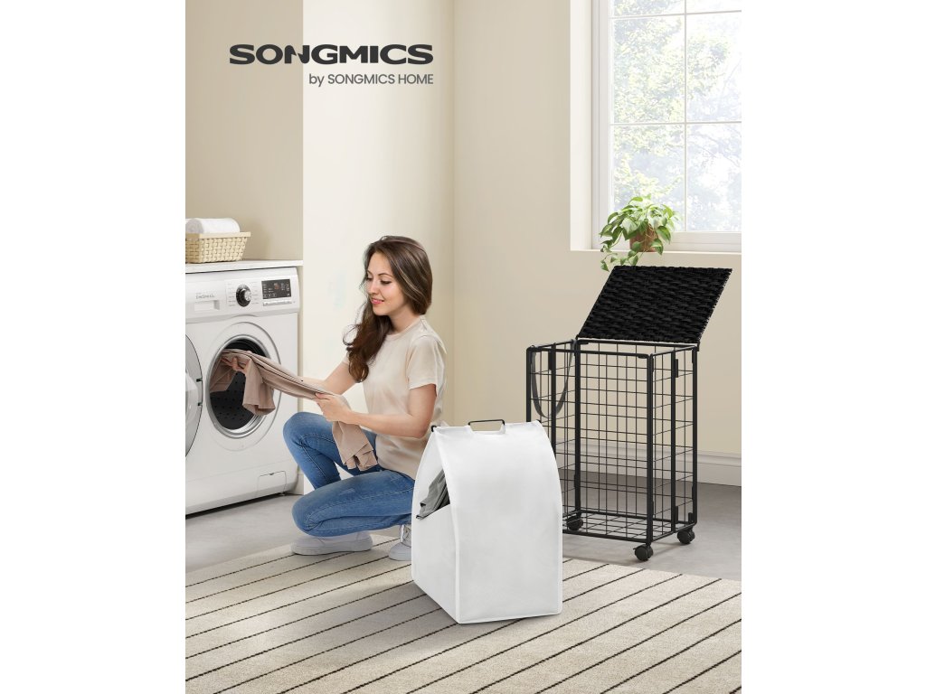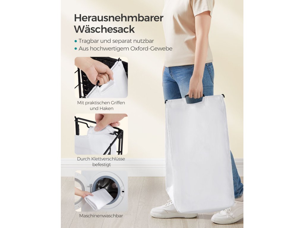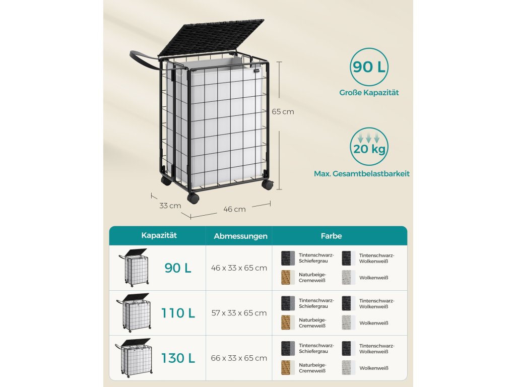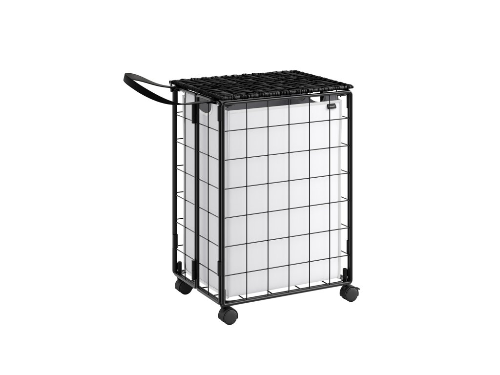 Skládací koš na prádlo na kolečkách, 90l, vyjímatelný vak na prádlo 46 x 33 x 65 cm, inkoustově černá/oblázkově bílá.
