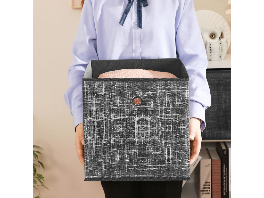 Kousky a kousky, vraťte se domů: Pokud se vám hračky, dálkové ovladače nebo deky neustále potulují po domě bez určení, je načase jim nabídnout domov; uložte je do tohoto balení 6 úložných boxů, které dodají vašemu domovu svěží atmosféru;Osvědčená kvalita: Koše jsou podepřeny 2 mm silnou lepenkou potaženou netkanou textilií o hmotnosti 80 g/m², která zajišťuje tuhou, vzpřímenou konstrukci, jež udrží 5 kg na každou kostku a funguje jako kouzlo. jako vždyHodí se do stísněných prostor: Díky rozměrům 30 x 30 x 30 cm se vejde do většiny úložných polic, kostkových úložných jednotek nebo skříní; díky integrovanému držadlu s průchodkou lze tyto boxy snadno zvedat nebo vytahovat;Postavit nebo složit: Otevřete krabici, vložte vyztužené dno, trochu přitlačte, aby pevně sedělo v rozích, a váš domov ožije; s promyšlenou skládací konstrukcí, kterou lze snadno složit a uložit, když se nepoužívá;Co získáte: 6 přenosných lehkých úložných boxů se skládací konstrukcí pro úsporu místa - ideální úložný prostor pro organizaci vašeho domu.| Kategorie: | Úložné boxy |