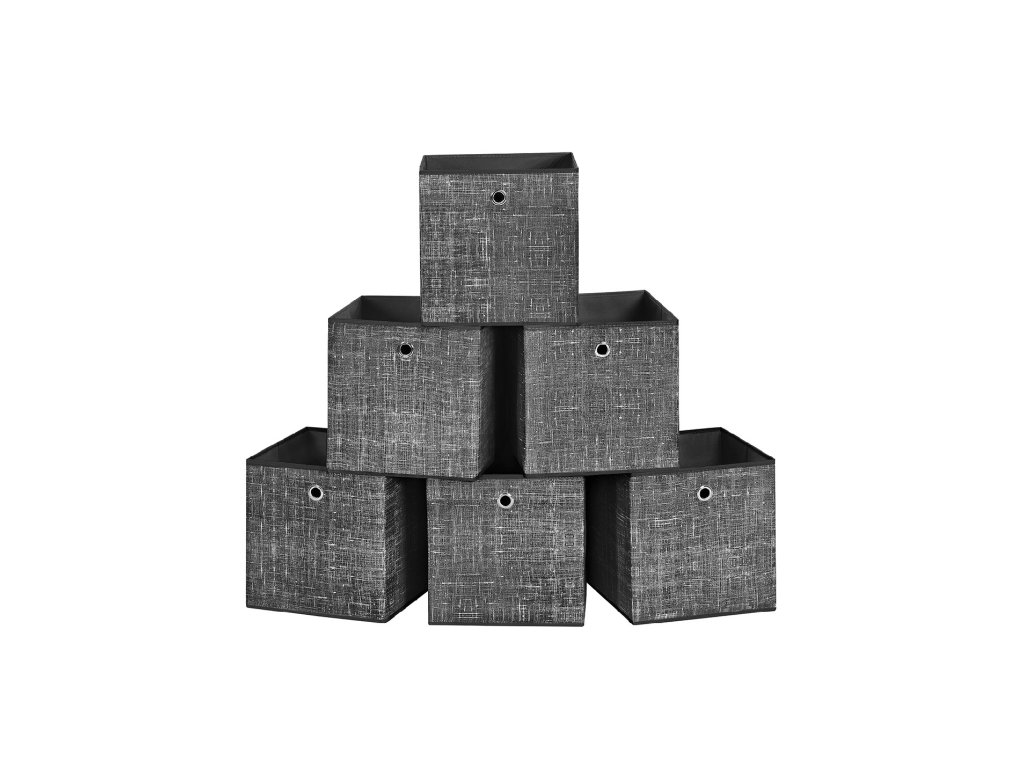 Skládací úložné boxy, sada 6 úložných boxů z netkané textilie, 30 x 30 x 30 cm, organizér na hračky a oblečení, černá.