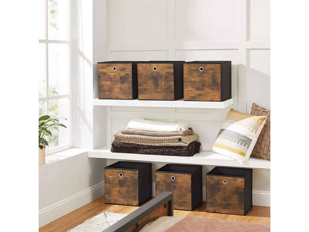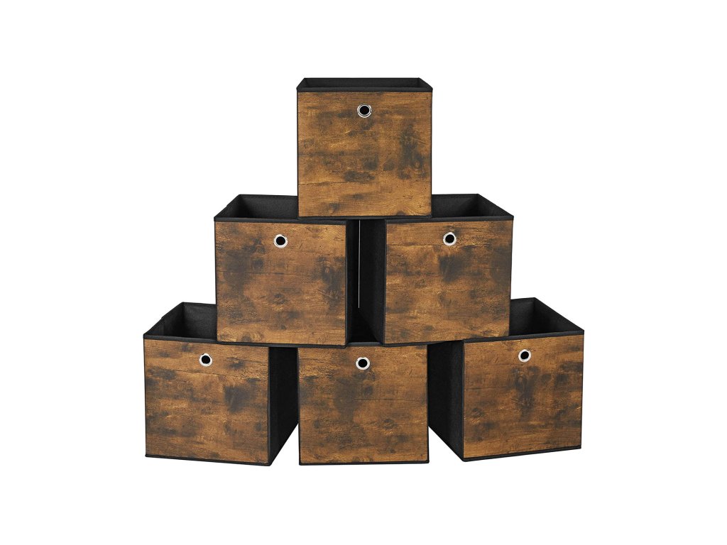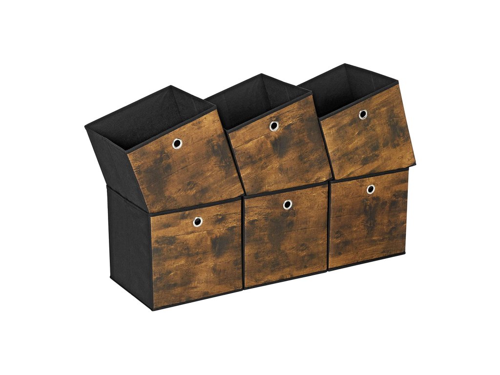 Skládací úložné boxy, sada 6 úložných kostek, organizér na oblečení, boxy na hračky, s netkanou textilií, Oxford Fabric, 30 x 30 x 30 cm, rustikální hnědá a černá.