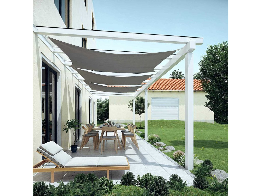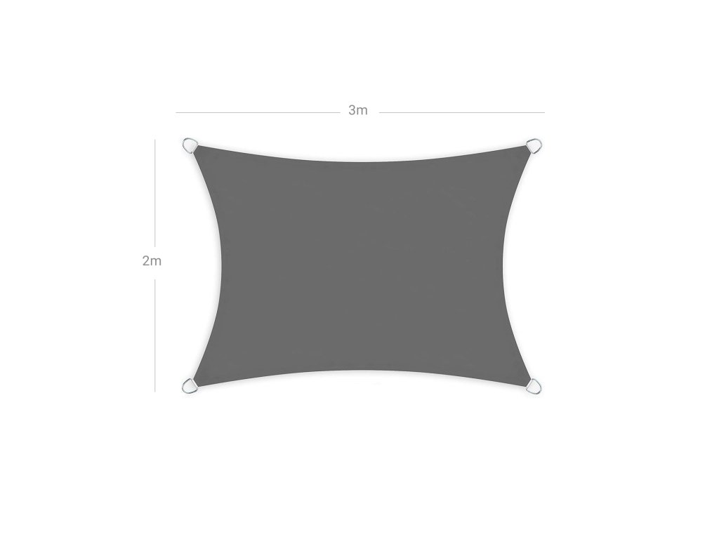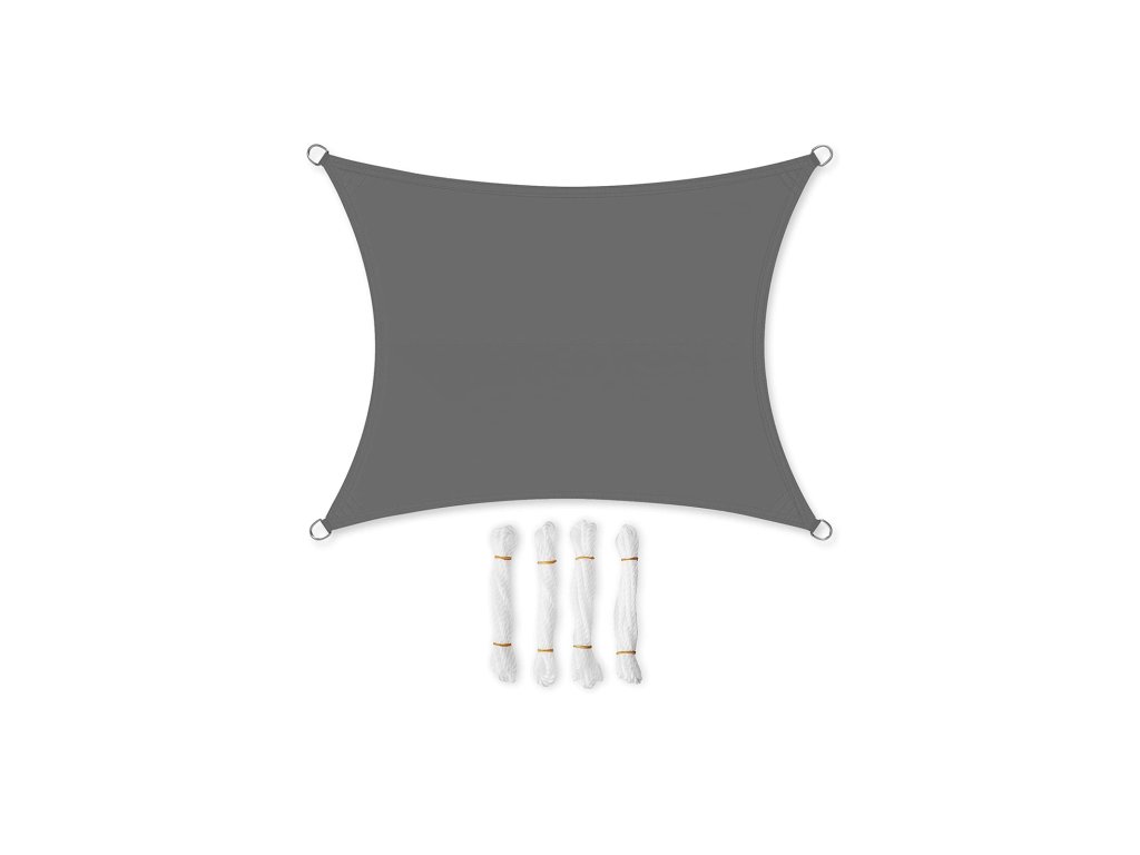 Sluneční plachta 2 x 3 m, voděodolná nejméně do 1000 mm, 93% ochrana proti UV záření, polyester odolný proti roztržení, odolná proti povětrnostním vlivům, pro zahradu, terasu, kempování, kouřově šedá.