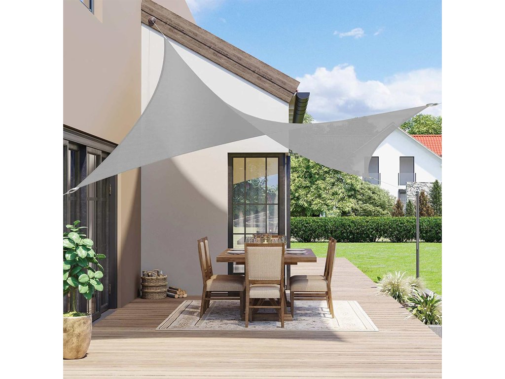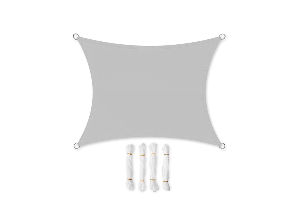 Sluneční plachta 2 x 3 m, voděodolná nejméně do 1000 mm, 93% ochrana proti UV záření, polyester odolný proti roztržení, odolná proti povětrnostním vlivům, pro zahradu, terasu, kempování, světle šedá.