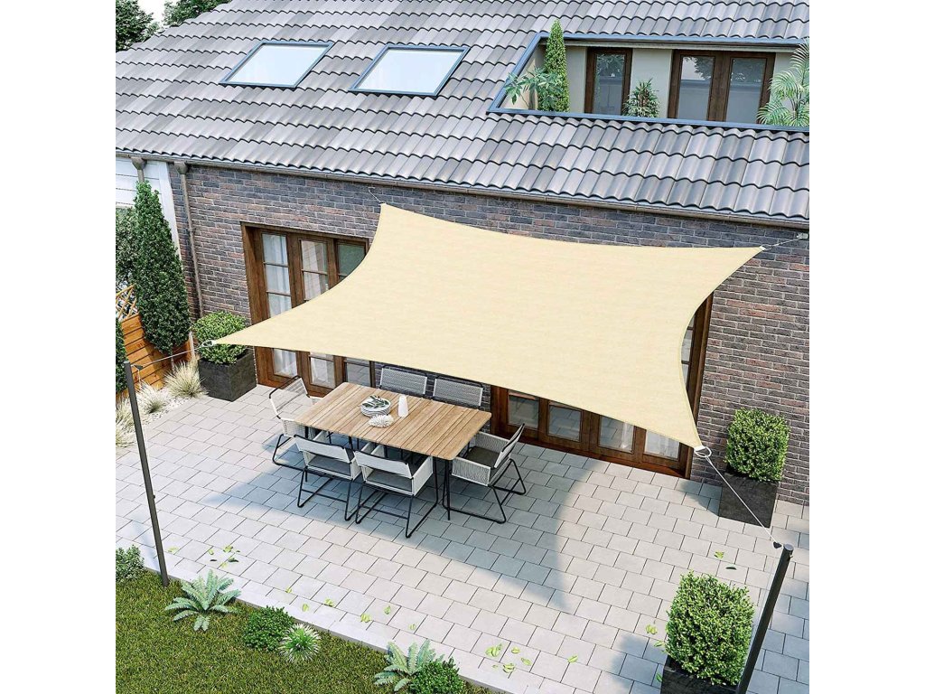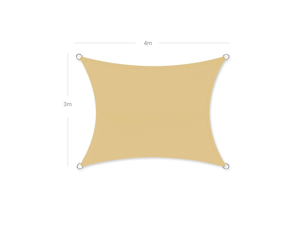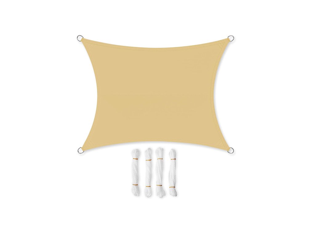 Sluneční plachta 3 x 4 m, voděodolná nejméně do 1000 mm, 93% ochrana proti UV záření, polyester odolný proti roztržení, odolný proti povětrnostním vlivům, pro zahradu, terasu, kempování, písková barva.