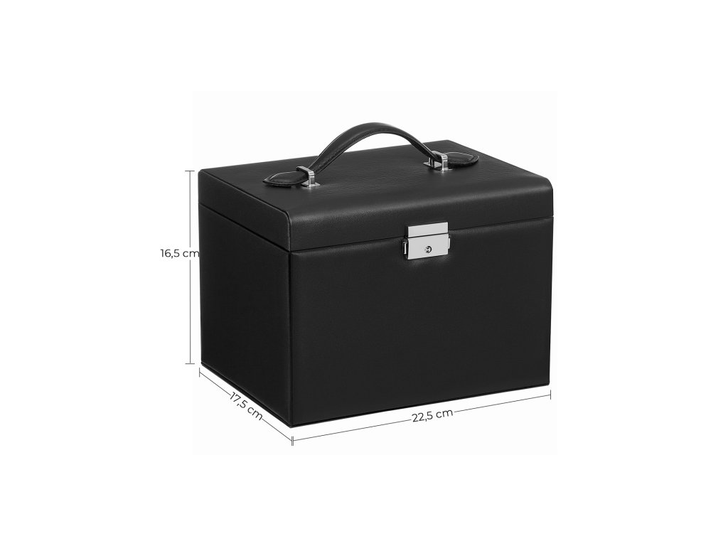 SONGMICS Šperkovnice, organizér na šperky, 4 úrovně, uzamykatelný kufřík na šperky s přihrádkami, sametová podšívka, černá JBC159B01