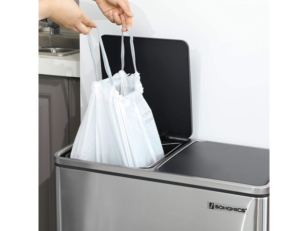 Sáčky do koše na míru Tyto stahovací vložky do koše jsou navrženy tak, aby přesně pasovaly do dvojitých odpadkových košů SONGMICS o objemu 30 l nebo 60 l, a pomáhají vám tak zvládnout nepořádek a udržet vaši kuchyni čistou.Žádné praskliny, žádné úniky Tyto vložky do odpadkových košů jsou vyrobeny z robustního plastu s dvojitými švy a vyznačují se vysokou pevností, takže bezpečně pojmou odpadky až po okraj, aniž by se roztrhly nebo protekly.Praktické stahovací šňůrky Chcete-li tašku vyjmout, jednoduše zatáhněte za stahovací šňůrky na obou stranách, aby se taška utáhla, a poté ji vyjměte. Stahovací šňůrky také drží koš, takže taška zůstává na místě a je skrytá, když je víko zavřené.Zachycení tekutin Tyto zahuštěné pytle na odpadky jsou vodotěsné, zachycují tekutiny uvnitř a chrání vaši kuchyni před lepkavými kapkami. Jsou ideální pro sběr lahví, rostlinného odpadu a zbytků potravin.Zajistěte, aby se vešly Tyto pytle do odpadkových košů (kód vložky 30A) se dodávají v 1 roli (45 kusů) a mají rozměry 52 x 74 cm, když jsou vyrovnané. Vezměte prosím na vědomí, že pro dokonalé přizpůsobení je třeba vzít v úvahu jak kapacitu, tak tvar koše.| Kategorie: | Pytle na odpadky |