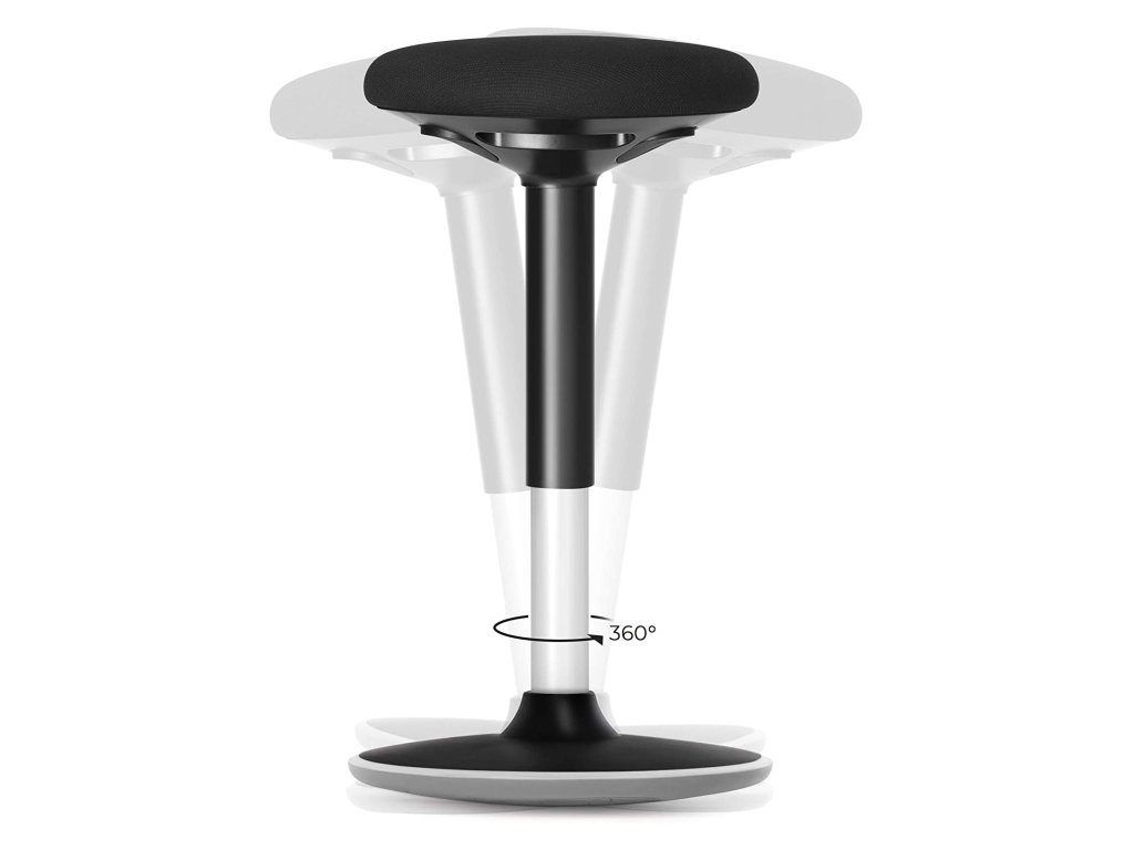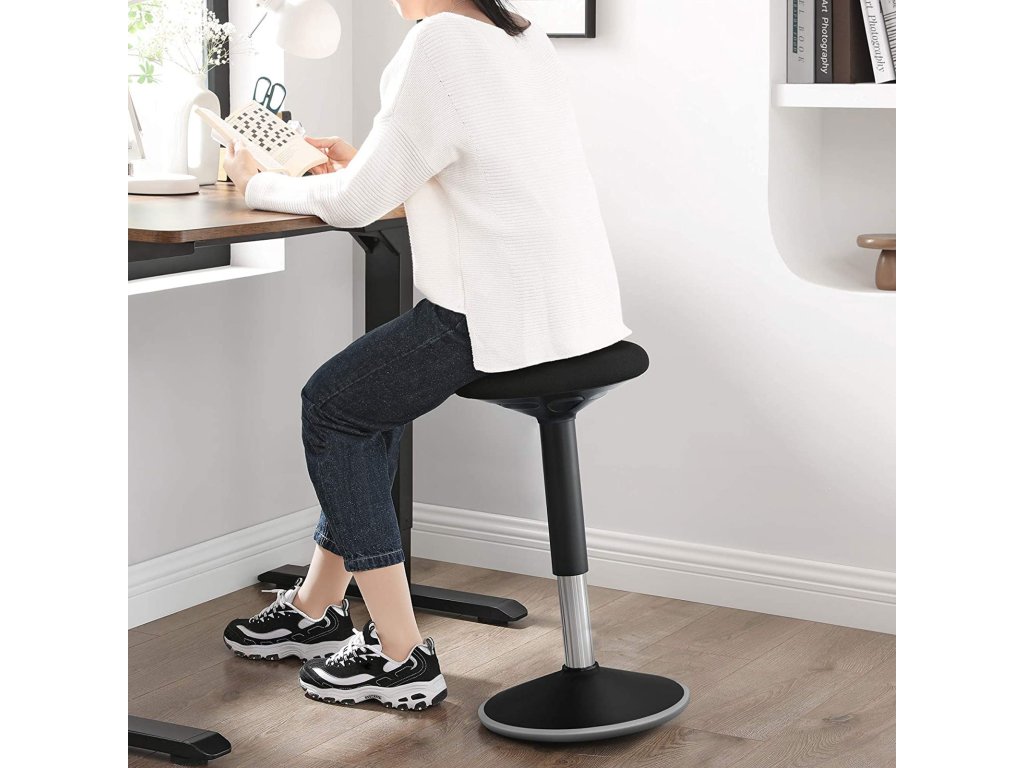 Stojací židle k psacímu stolu, ergonomická stolička, 360° otočná balanční židle, nastavitelná výška 60-85 cm, bez nutnosti montáže, černá.
