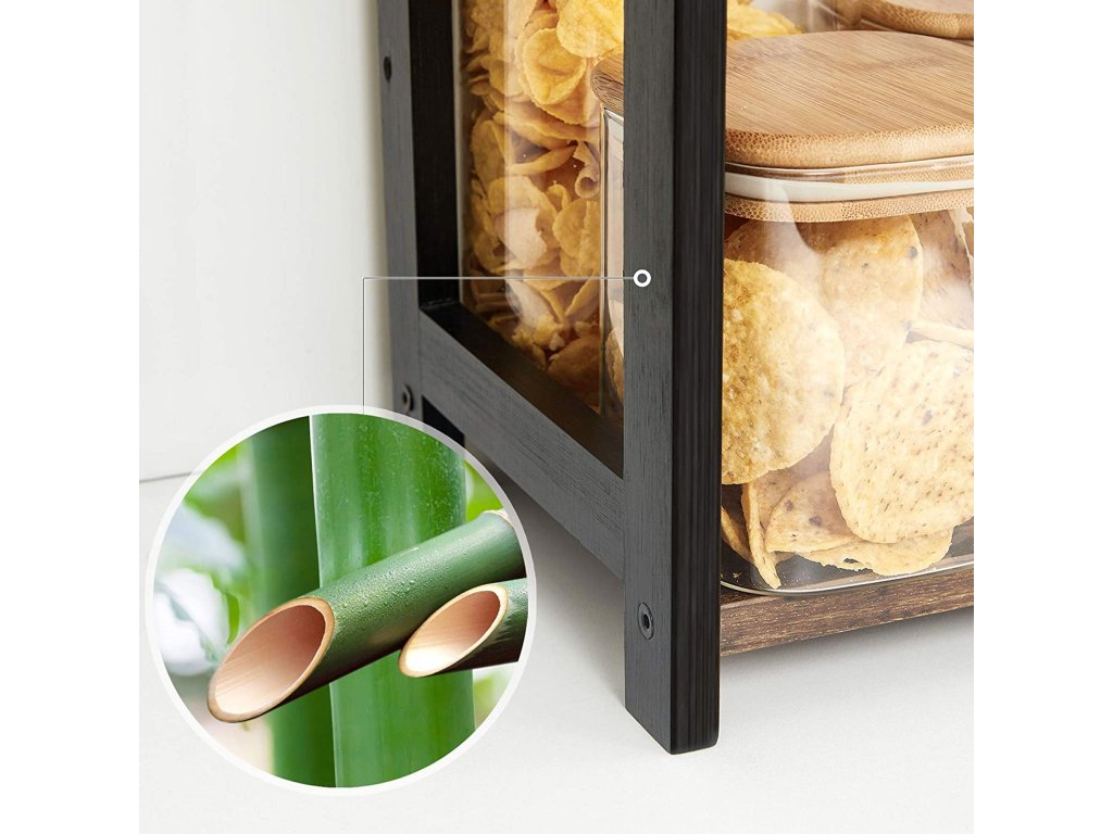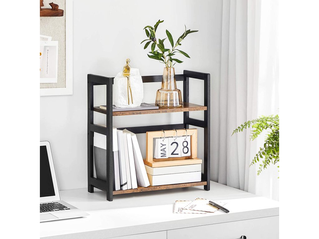 Stojan na kořenky, dvoupatrová odkládací polička na desku, stolní organizér, bambusový rám, do kuchyně, jídelny, kanceláře, rustikální hnědá a černá.