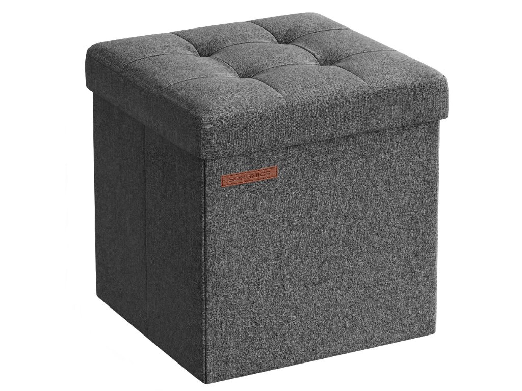 Stolička s úložným prostorem, malá skládací lavice, 30 x 30 cm, úložný box, maximální zatížení 130 kg, do obývacího pokoje, ložnice, ložnice, tmavě šedá.