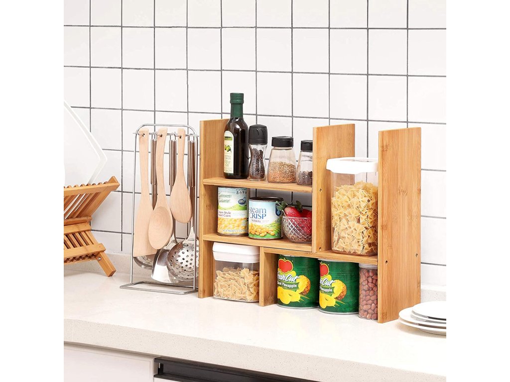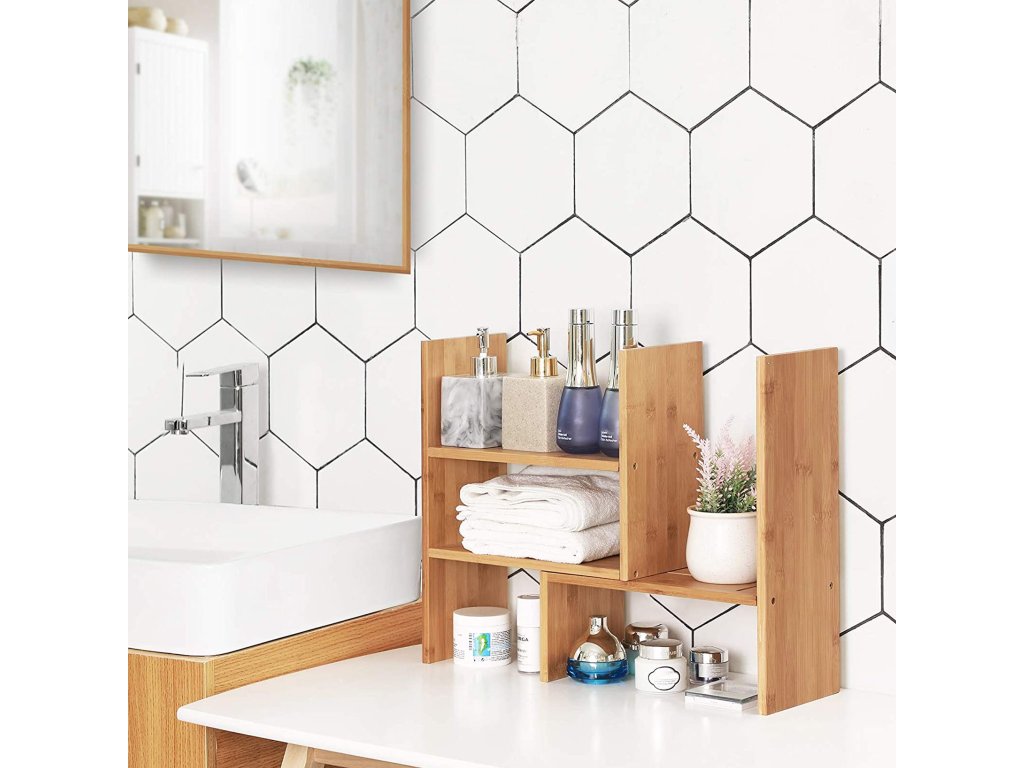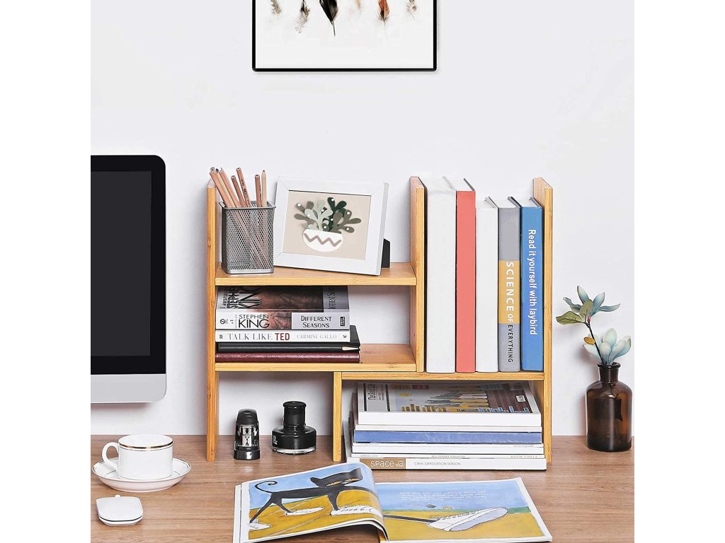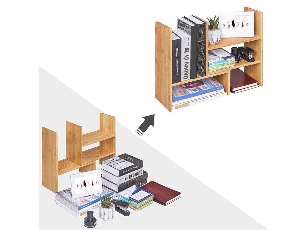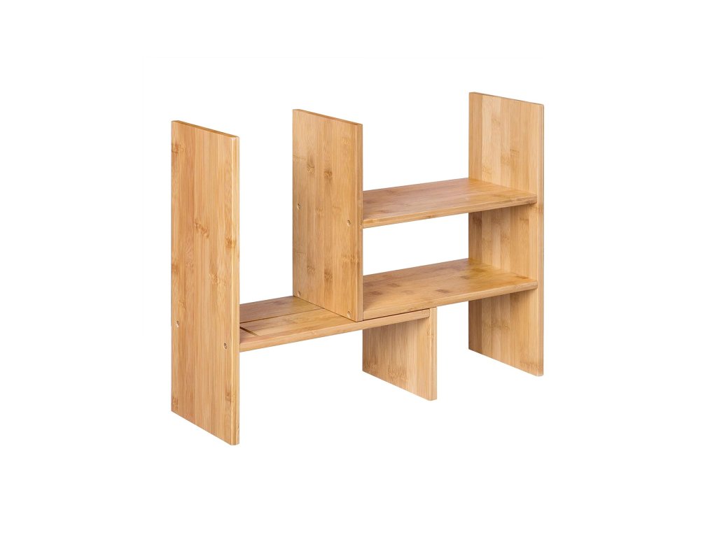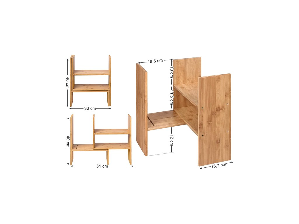 Stolní organizér, 3 přizpůsobitelné moduly, prostorově úsporný stolní regál pro kutily, malá dekorace na knihy do kanceláře, kuchyně, koupelny, přírodní bambus.