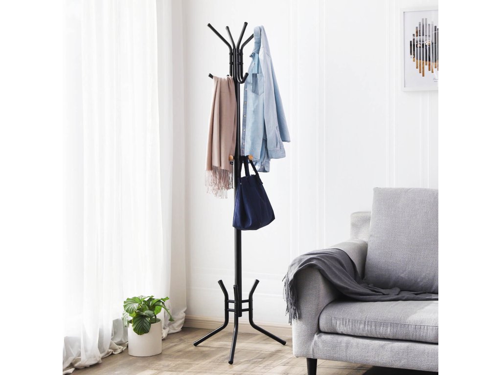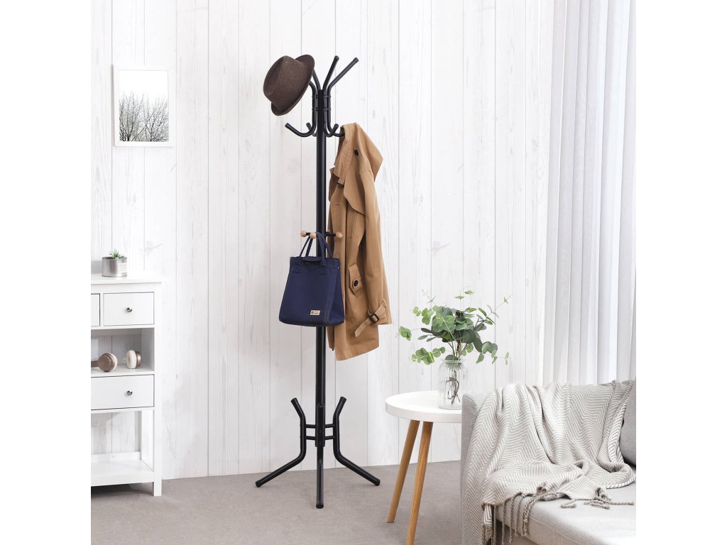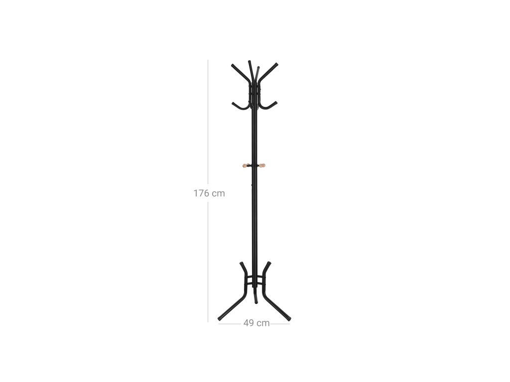 Stylový kovový stojan na kabáty, 12 háčků, 176 cm, černý.