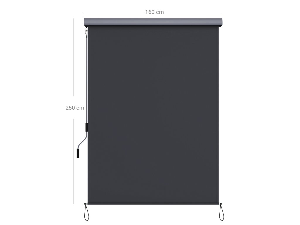 Svislá markýza na terasu a balkon 2,5 x 1,6 m (d x š) s krytem, venkovní ochrana před sluncem a větrem, ochranná síť, šedá.