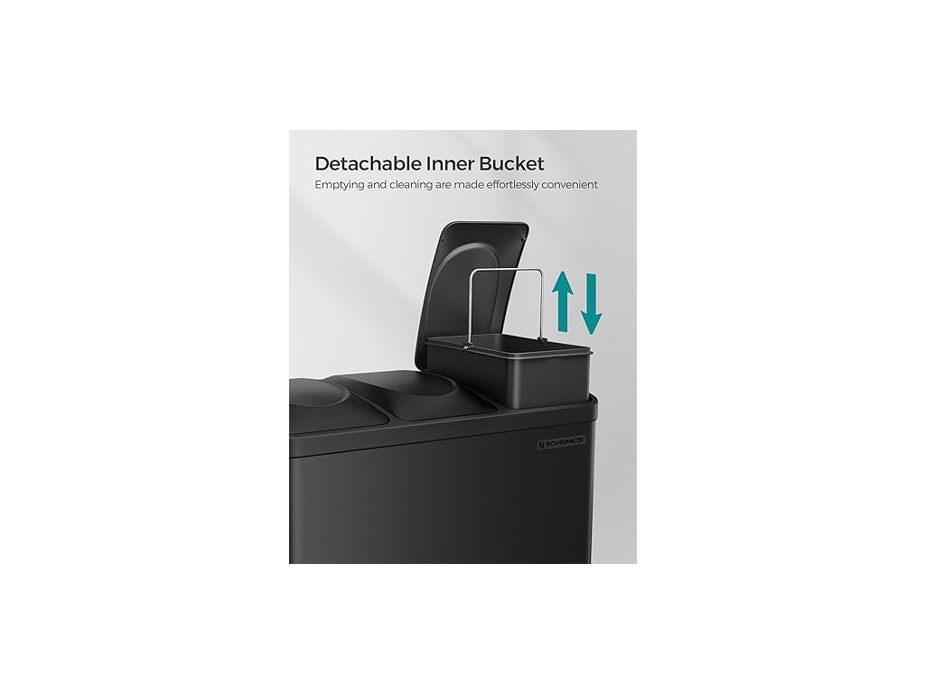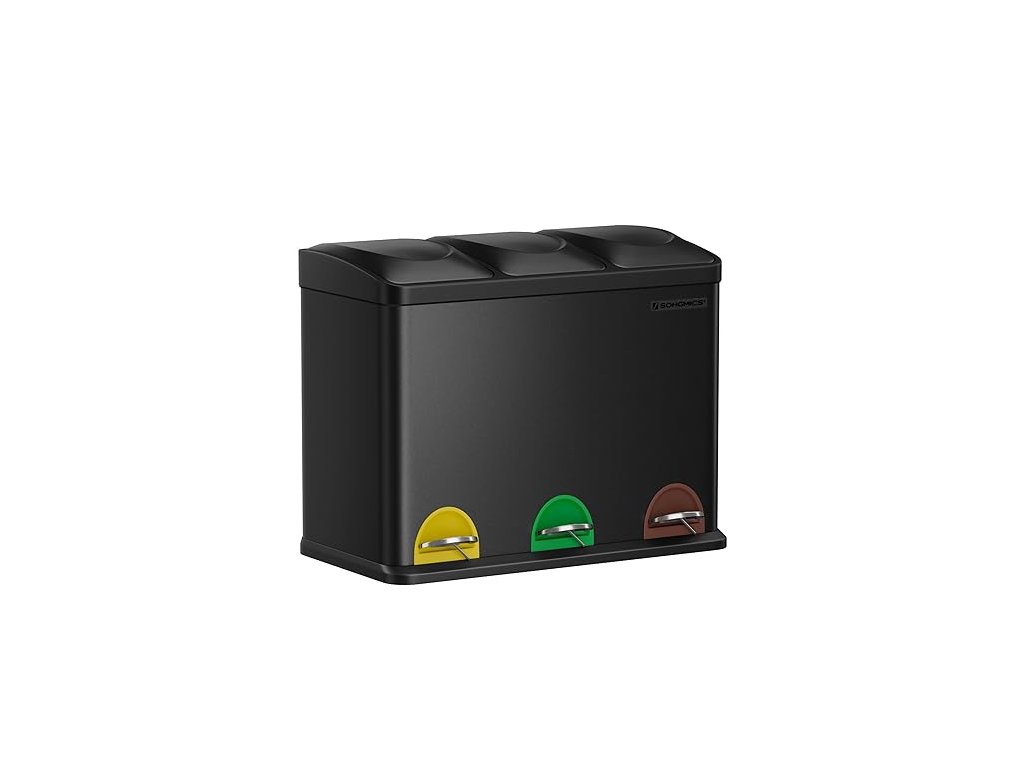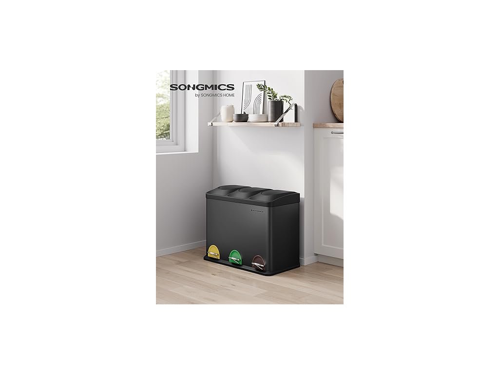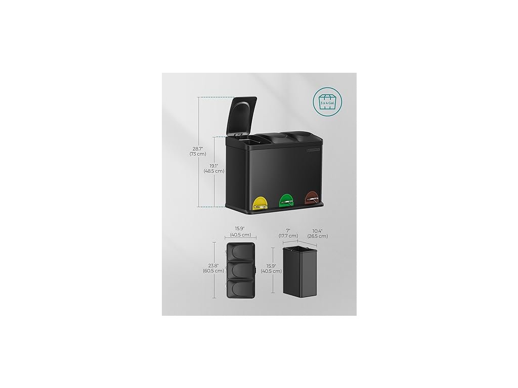 Optimalizované třídění odpadu Tento trojitý odpadkový koš má tři 15litrové přihrádky, které usnadňují třídění různých druhů odpadu a zefektivňují nakládání s odpadem ve vaší domácnosti.Pohodlné barevné kódování Každá přihrádka tohoto odpadkového koše je vybavena barevným pedálem pro intuitivní identifikaci a ovládání bez použití rukou, třídění odpadu je snadné a hygienické.VYJÍMATELNÉ VNITŘNÍ NÁDOBY Tento pedálový koš o objemu 45 l se 3 vyjímatelnými vnitřními kbelíky, každý o rozměrech 7" x 10,4" x 16", zjednodušuje nakládání s odpadem. Nedošlo k náhodnému rozbití nebo vylití sáčku? Kbelík jednoduše vyjměte a vyčistěte.SOLIDNÍ A SNADNO ČISTIT Tento trojitý odpadkový koš, vyrobený z robustní oceli a opatřený vysoce kvalitními povrchovými úpravami, kombinuje snadné čištění s dlouhotrvající kvalitou. zajišťuje, že zůstane v bezvadném stavu.Estetická funkčnost Díky elegantním rozměrům 60,5 x 40,5 x 48,5 cm se tento moderní odpadkový koš skvěle hodí do kuchyně, na pracovní desku nebo vedle lednice. zvýšení jeho funkčnosti a vizuálního půvabu| Kategorie: | Odpadkové koše |