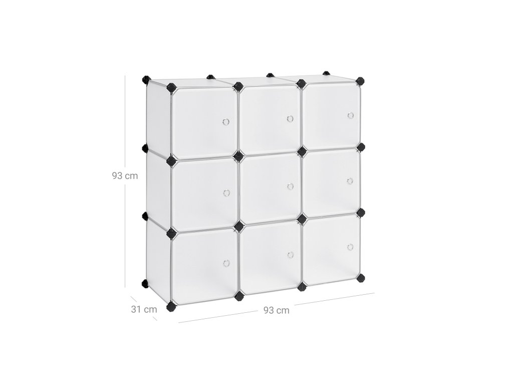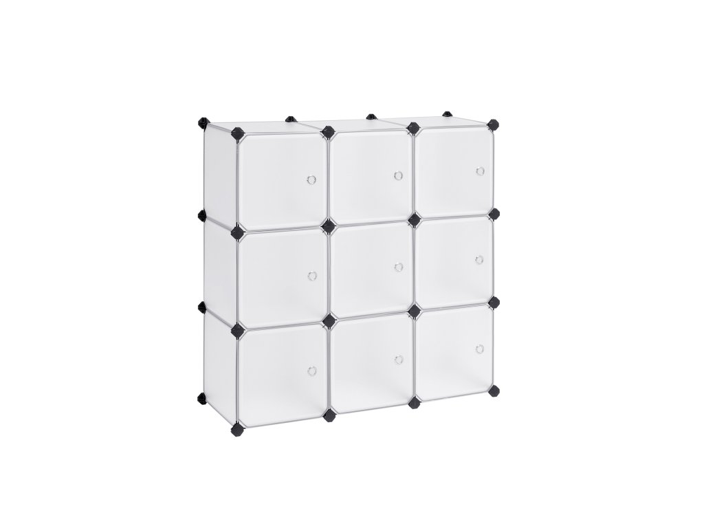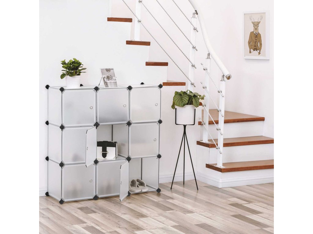 Úložná jednotka s 9 kostkami, plastová skříň s dveřmi, modulární skříň na oblečení, boty, hračky, knihy, snadná montáž, bílá.