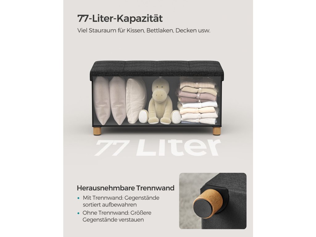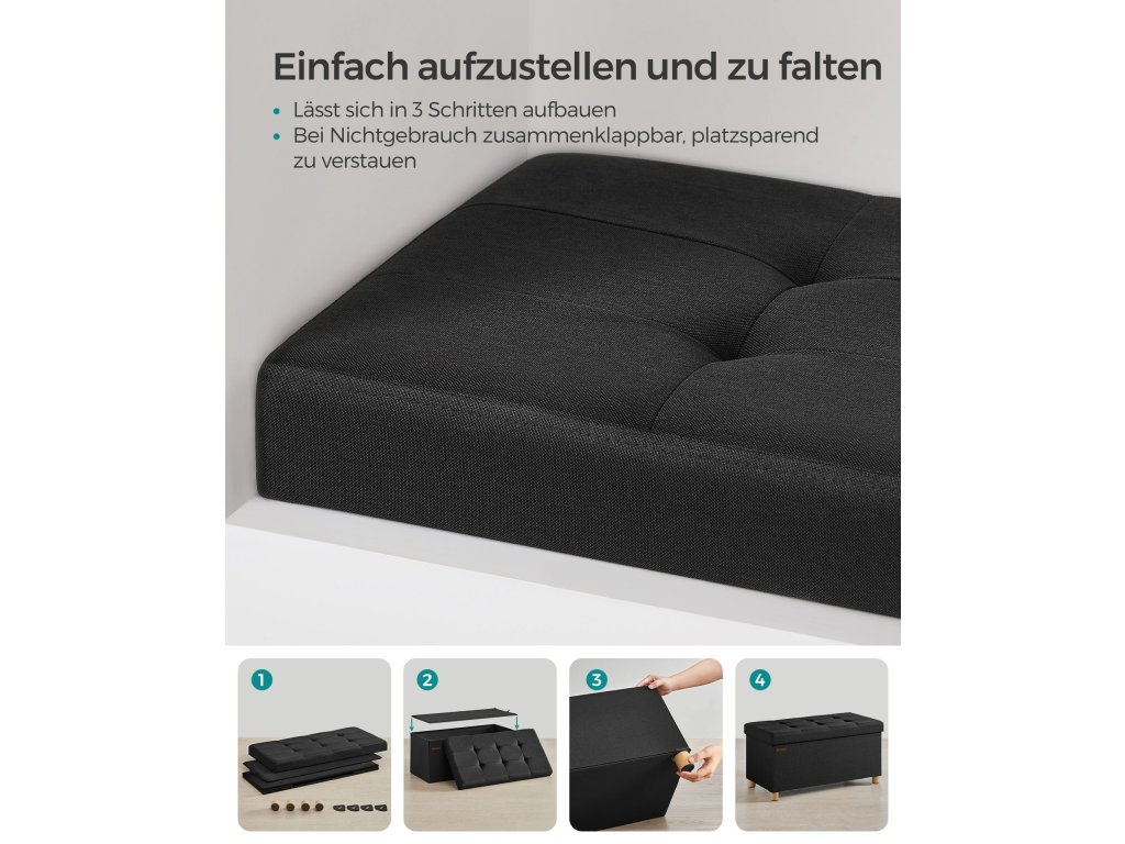 Úložná lavice na boty, skládací sedadlo, truhla, 38 x 76 x 40 cm, inkoustová černá.