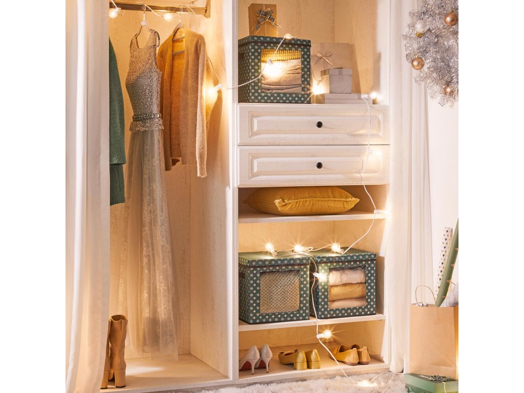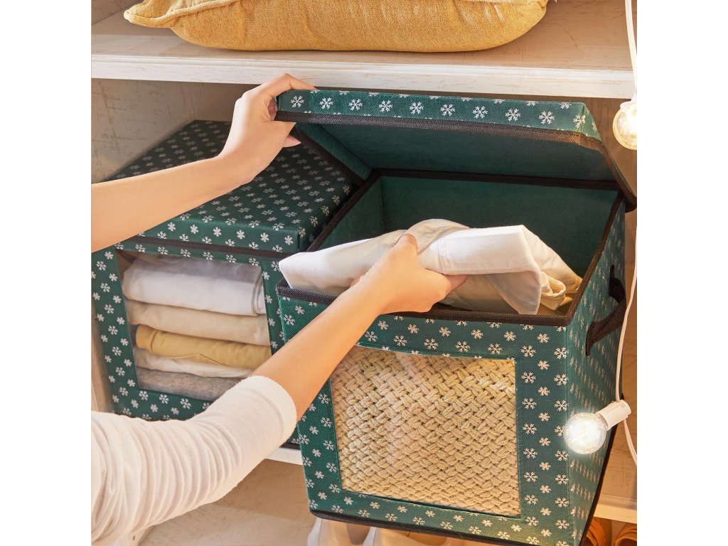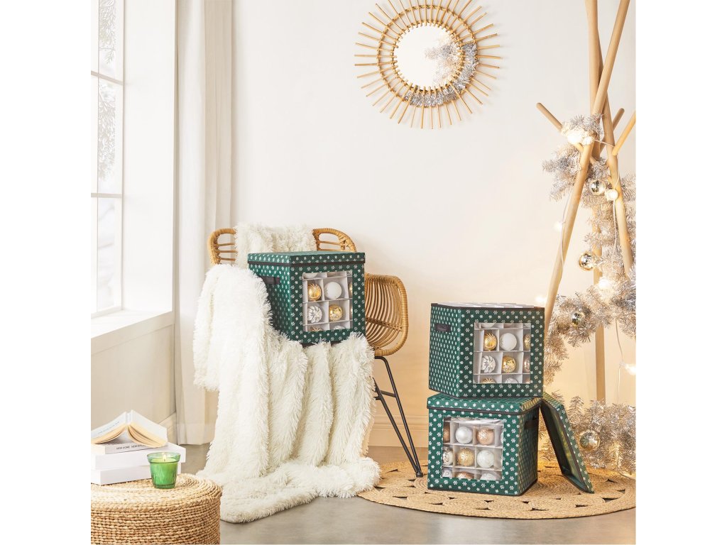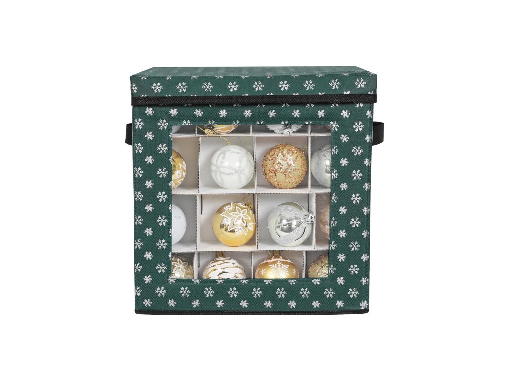 OBKLÍČENI VÁNOČNÍ VESELICÍ: v obývacím pokoji hraje vánoční hudba, na stromeček se věší koule z pytle. ale počkejte! Taška? Vaše drahocenné dekorace si zaslouží kouzelné místo z této sady 3 zelených úložných boxů s fascinujícími sněhovými vločkami.BUBLINY, PINECONES, ZVONKY: Rádi si dopřáváte různé druhy vánočních ozdob? Kulaté nebo jiné tvary, díky modulárním děličům můžete vytvořit 4 úrovně rozdělené na míru (max. počet míčků v krabici: 64).DEKORUJTE POŘÁDNĚ: Nevytvářejte nepřehledný vánoční stromek! Rozdělte červené, zlaté a skleněné žárovky do těchto 3 krabic na vánoční ozdoby. a díky průhlednému okénku si je můžete vybrat v pořadí příštích Vánoc.POD POSTELÍ NEBO NAD SKŘÍNÍ? Kompaktní rozměry a 2 úchyty po stranách tyto krabičky s cetkami lze snadno uchopit odkudkoli a kdykoli, kdy vás přepadne nostalgie po Vánocích a budete se chtít podívat.
