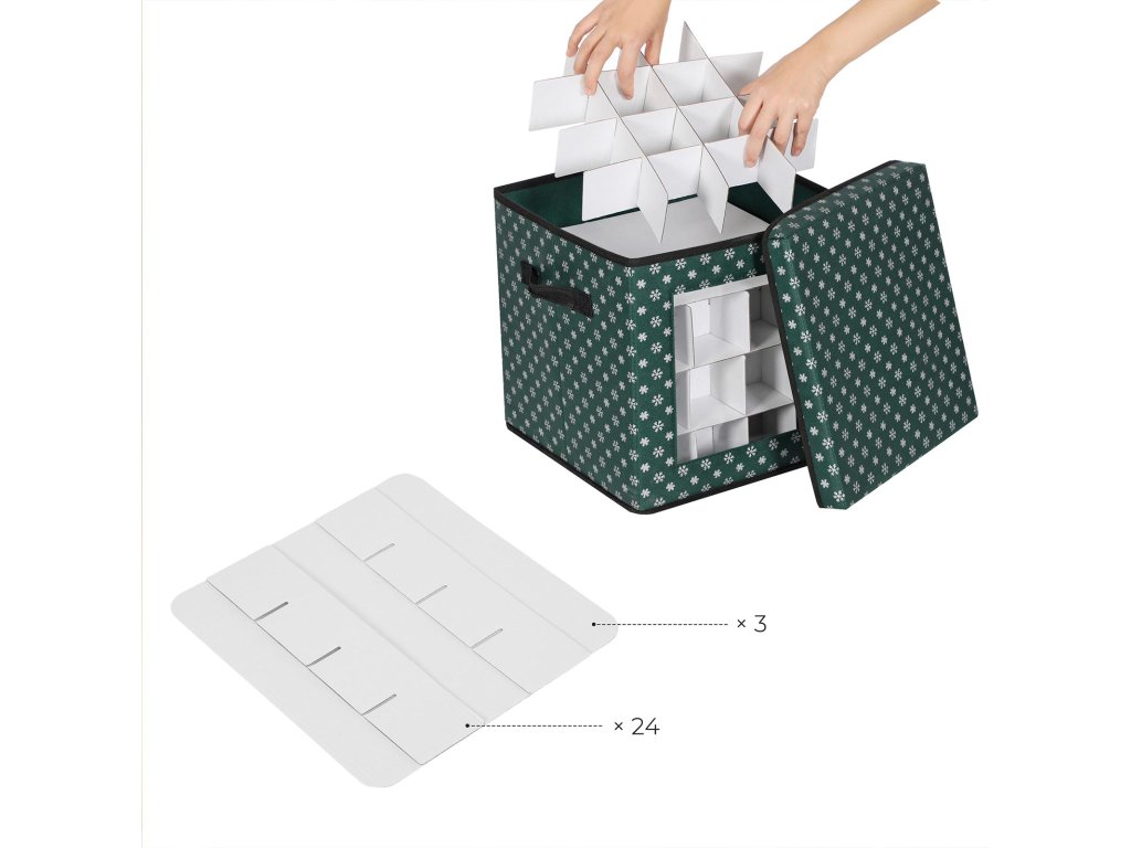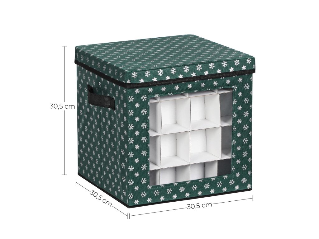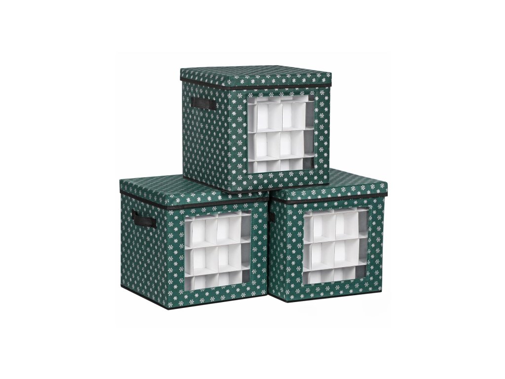 Úložné boxy na vánoční ozdoby, sada 3 úložných kostek na vánoční ozdoby, 64 míst v boxech, modulární děliče, 30,5 x 30,5 x 30,5 cm, zelená.