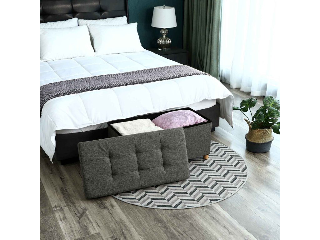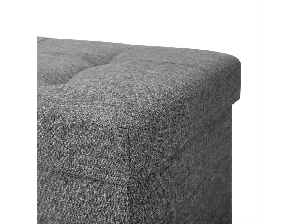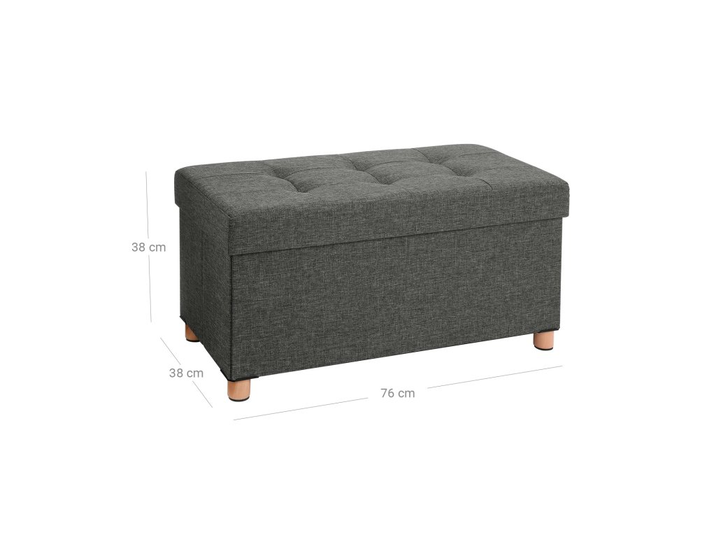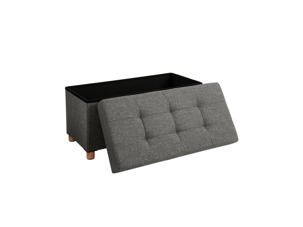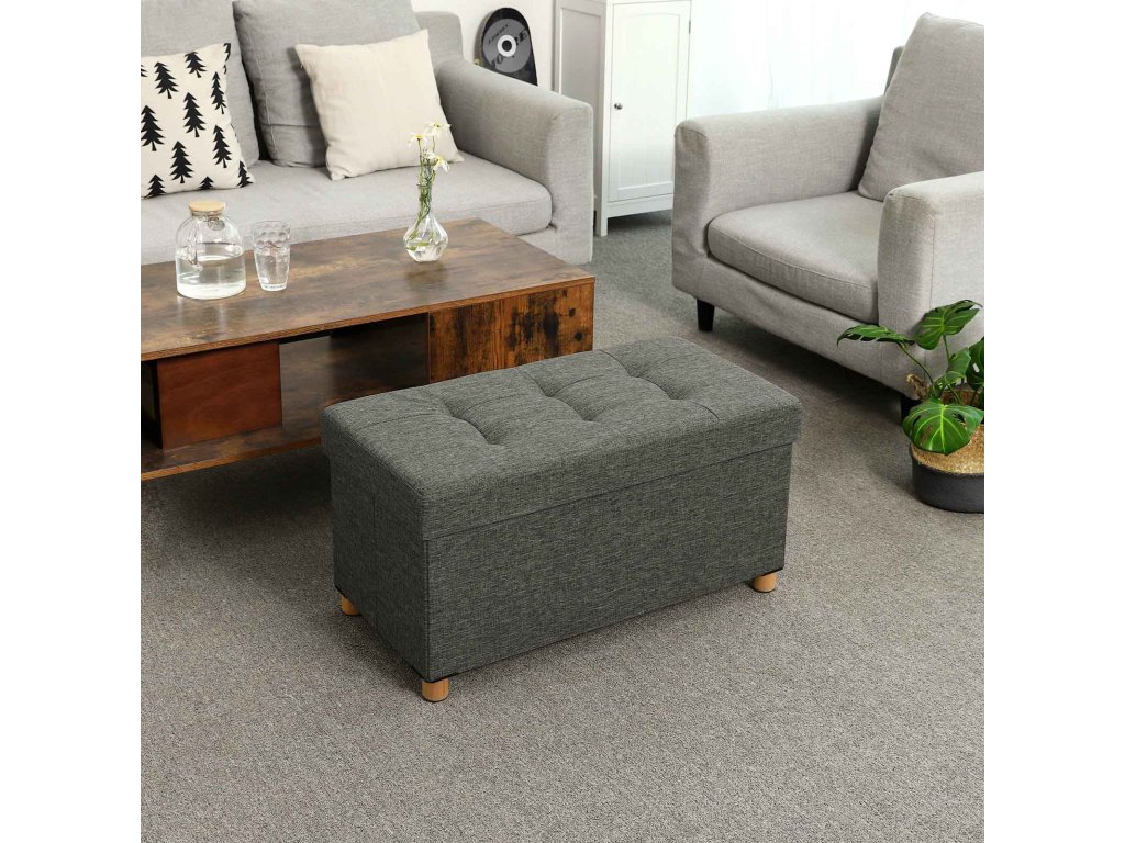 Úložný osmanský stolek, polstrovaná skládací lavice, truhla s víkem, nohy z masivního dřeva, šetří místo, objem 65 l, nosnost až 300 kg, do ložnice, předsíně, dětského pokoje, tmavě šedá.