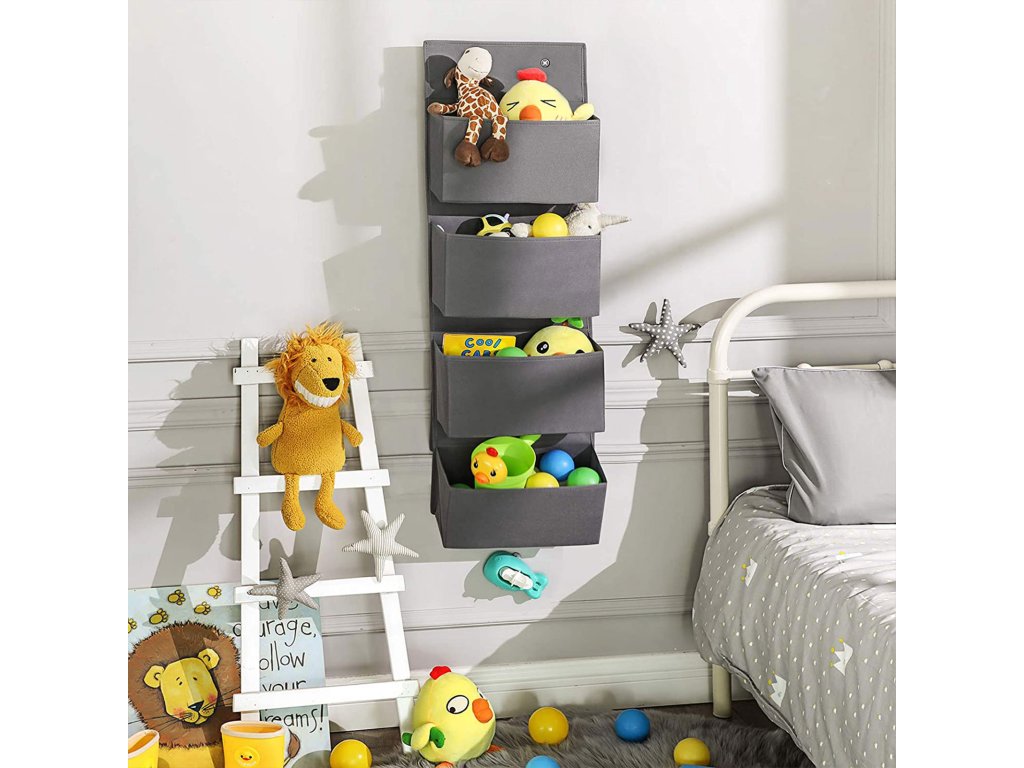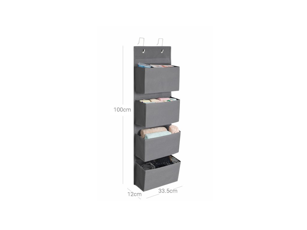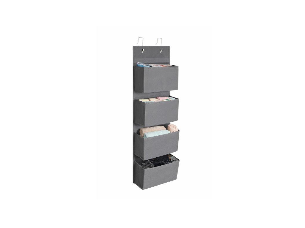 Úložný prostor nad dveřmi se 4 kapsami, nástěnný závěsný organizér, praktický a prostorný, do dětského pokoje, kanceláře, ložnice, 33,5 x 12 x 100 cm, šedá.